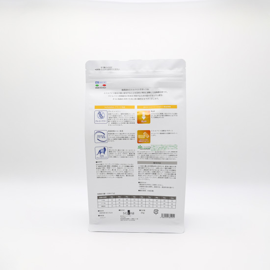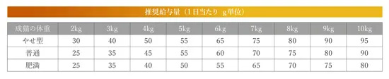 保障成分値(100gあたり) 粗タンパク質32%以上、粗脂肪16%以上、粗繊維5.5%以下、粗灰分10%以下、水分8%以下
