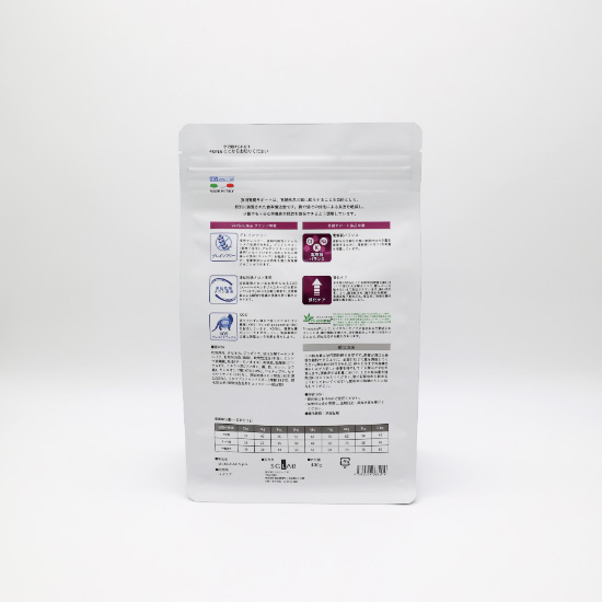 乾燥豚肉※※、タピオカ、ジャガイモ、加水分解サーモンタンパク※※、動物性油脂(鶏脂)※、動物性油脂(牛脂)※、エンドウ豆繊維、魚油(サーモンオイル)※、乾燥豆、乾燥魚(アンチョビ)、ミネラル類(マンガン、銅、鉄、セレン、ヨウ素)、キシロオリゴ糖(XOS 0.4%)、パイナップル、セイヨウトチノキ(0.01%)、凍結乾燥メロン果実(SOD源0.005%)、ミルクプロテインパウダー、酸化防止剤(植物油脂由来トコフェロール抽出物)※精製 99.6%一天然酸化防止剤で保存※※高消化性