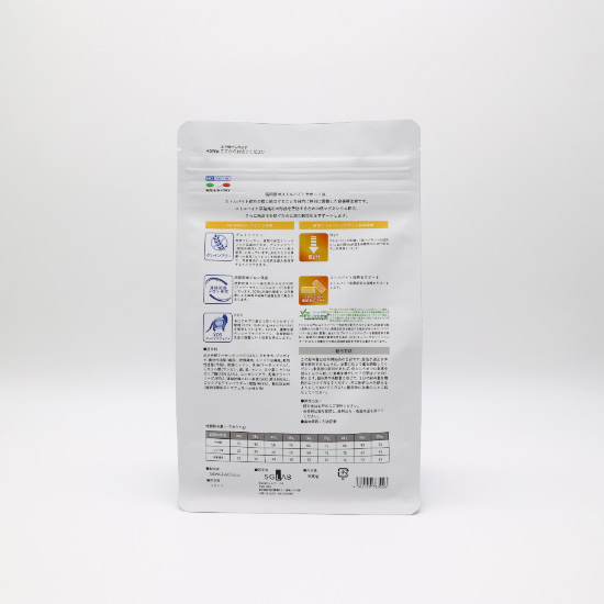 保障成分値(100gあたり) 粗タンパク質32%以上、粗脂肪16%以上、粗繊維5.5%以下、粗灰分10%以下、水分8%以下