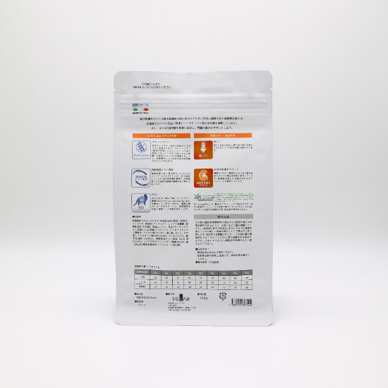 保障成分値(100gあたり) 粗タンパク質23%以上、粗脂肪16%以上、粗繊維7.8%以下、粗灰分10%以下、水分8%以下