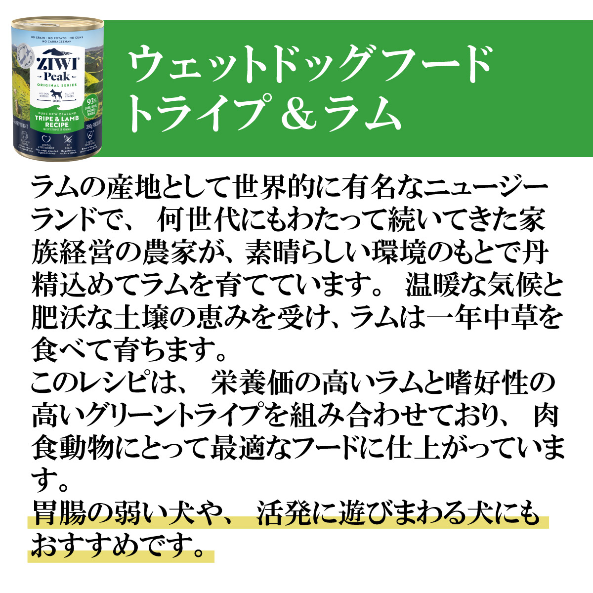 | 商品名 | ジウィ ZIWI ドッグフード ドッグ缶 トライプ&ラム |