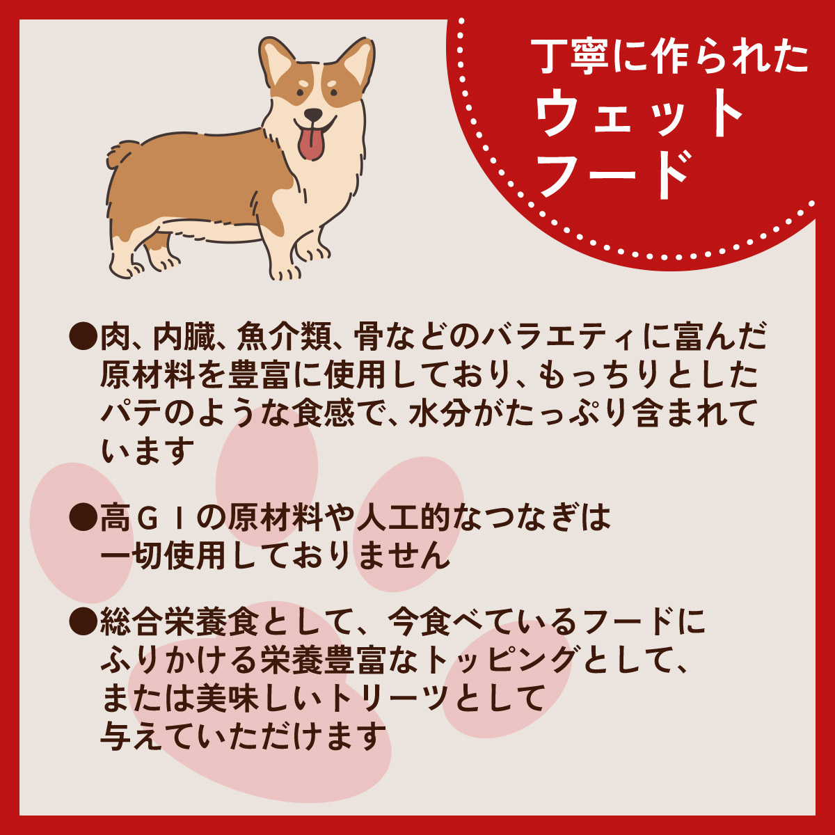 | 総合栄養食として、栄養価の高いトッピングとして、または美味しいおやつとしてお使いください。 | |