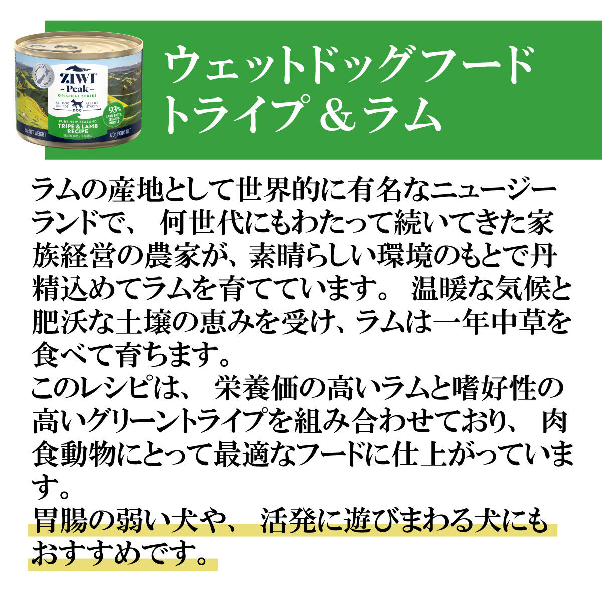 | 商品名 | ジウィ ZIWI ドッグフード ドッグ缶 トライプ&ラム |