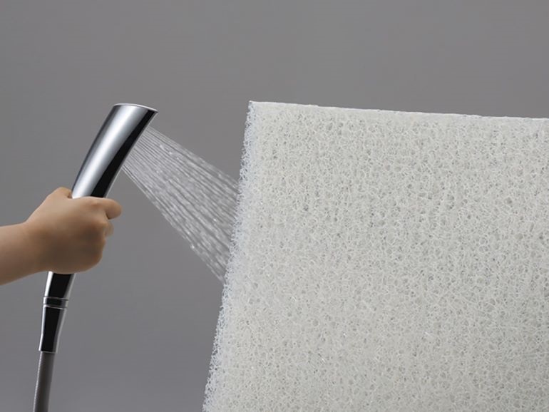 中材は水分を吸収しない素材なので、ご家庭でも簡単に水洗いができます。ダニやカビの発生も抑えられます。