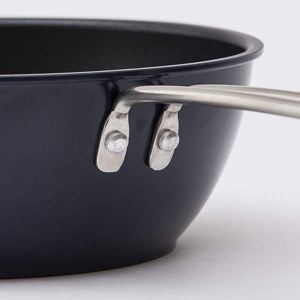 一般的なフライパンに比べて底が深く、「炒める」「焼く」「煮る」「ゆでる」といった様々な調理ができる、ゆとりの空間を代表するアイテムのひとつ「深型フライパン」。※IH対応
