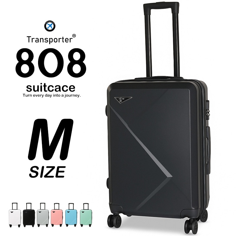 スーツケース Mサイズ キャリーケース 軽量 頑丈 ABS 360度回転ダブルキャスター 旅行用 出張 修学旅行 ビジネス向け キャリーバッグ Transporter 【808M】 ブラック トラベルソムリエ