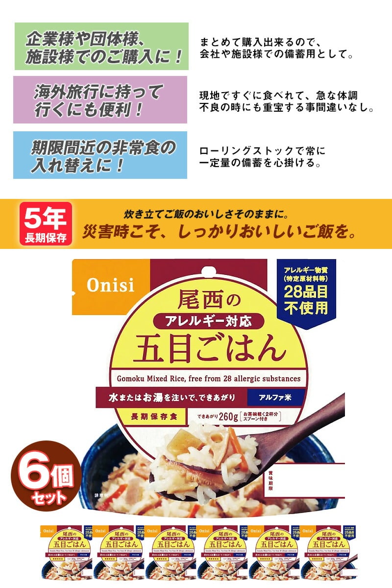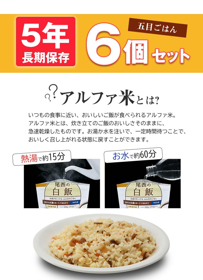 アルファ米(五目ごはん)6個セットのページになります。