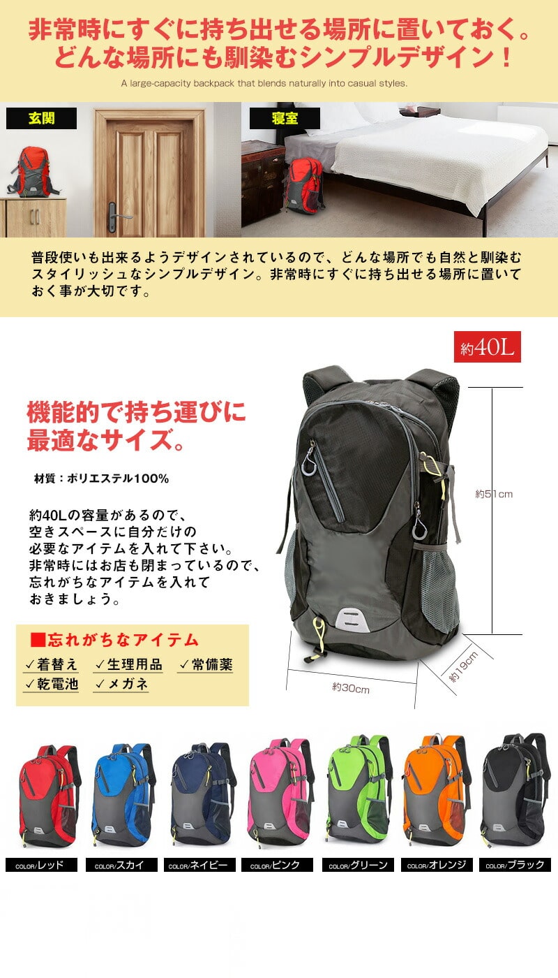 非常時に両手が使える!防災に最適な持ち出しリュック!