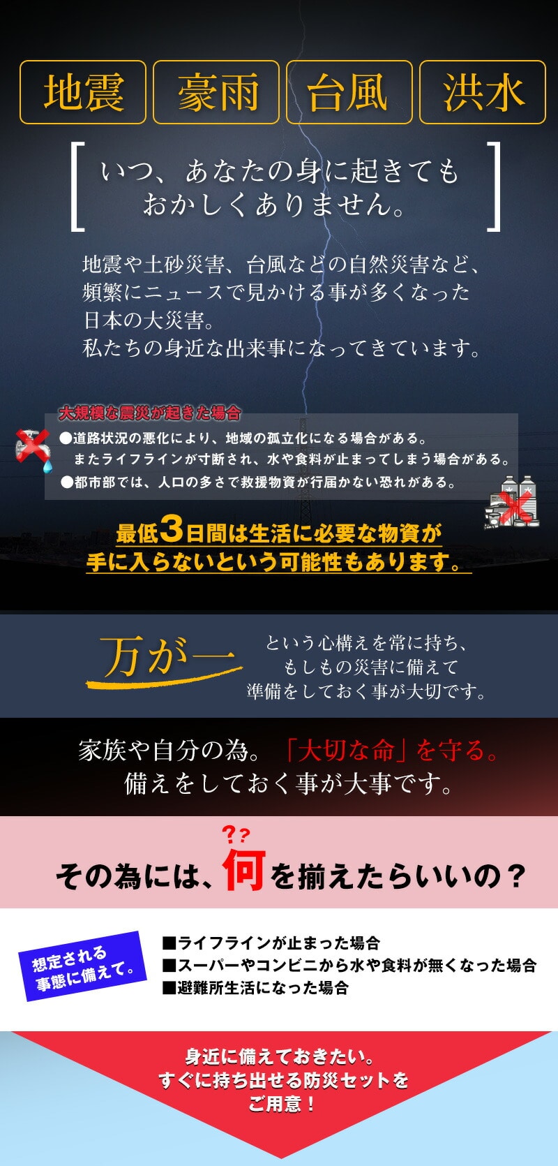 ●災害発生後はご注文が非常に殺到いたします。ご注文を頂いてから発送まで約7~10営業日、お時間を頂く場合がございます。予めご了承下さい。