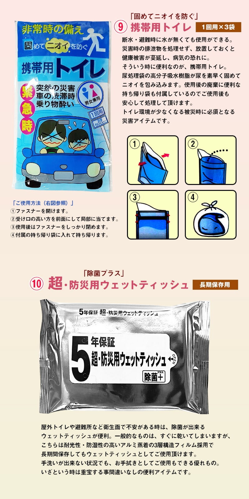 9.携帯用トイレ×3袋