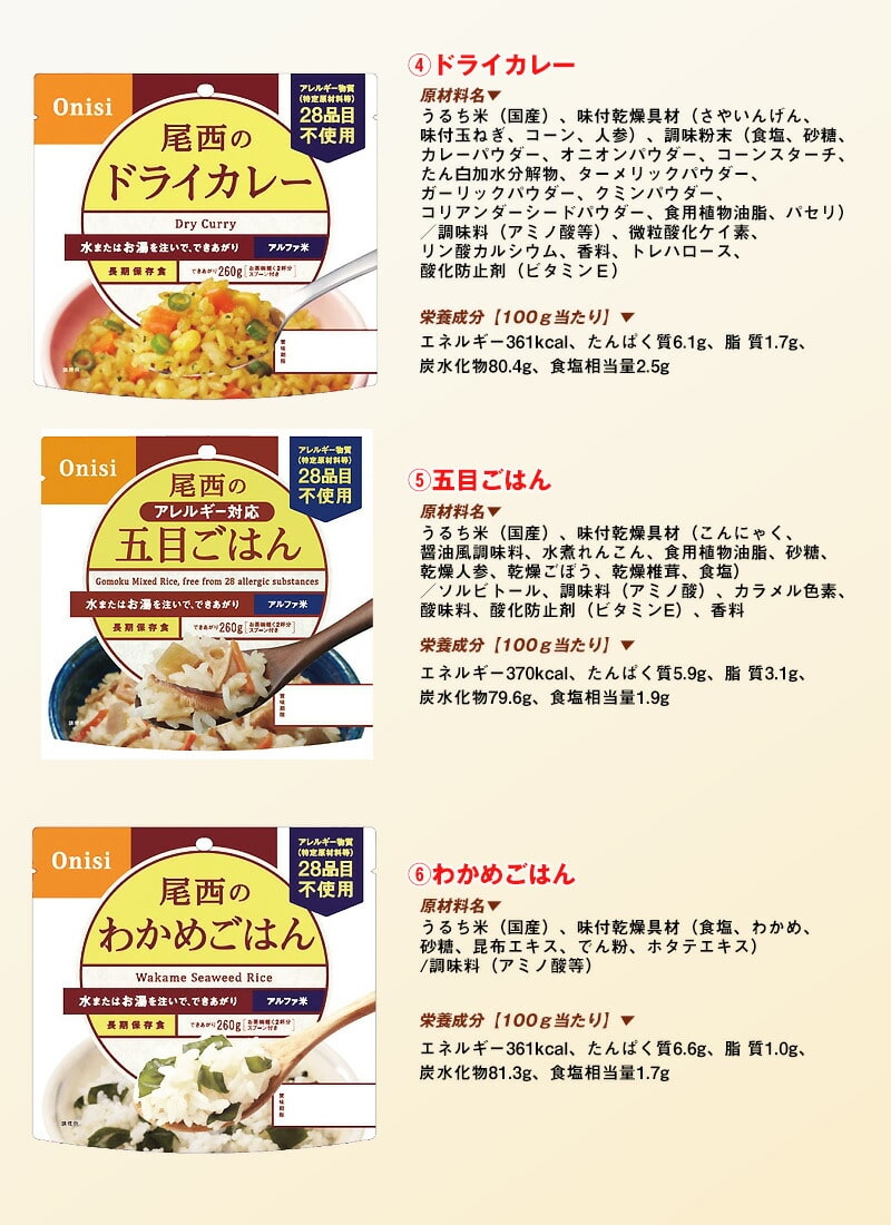 ●保存食は、流通の段階で多少のお時間がかかるため、お手元に届く際には賞味期限が5年を切る場合もございます。