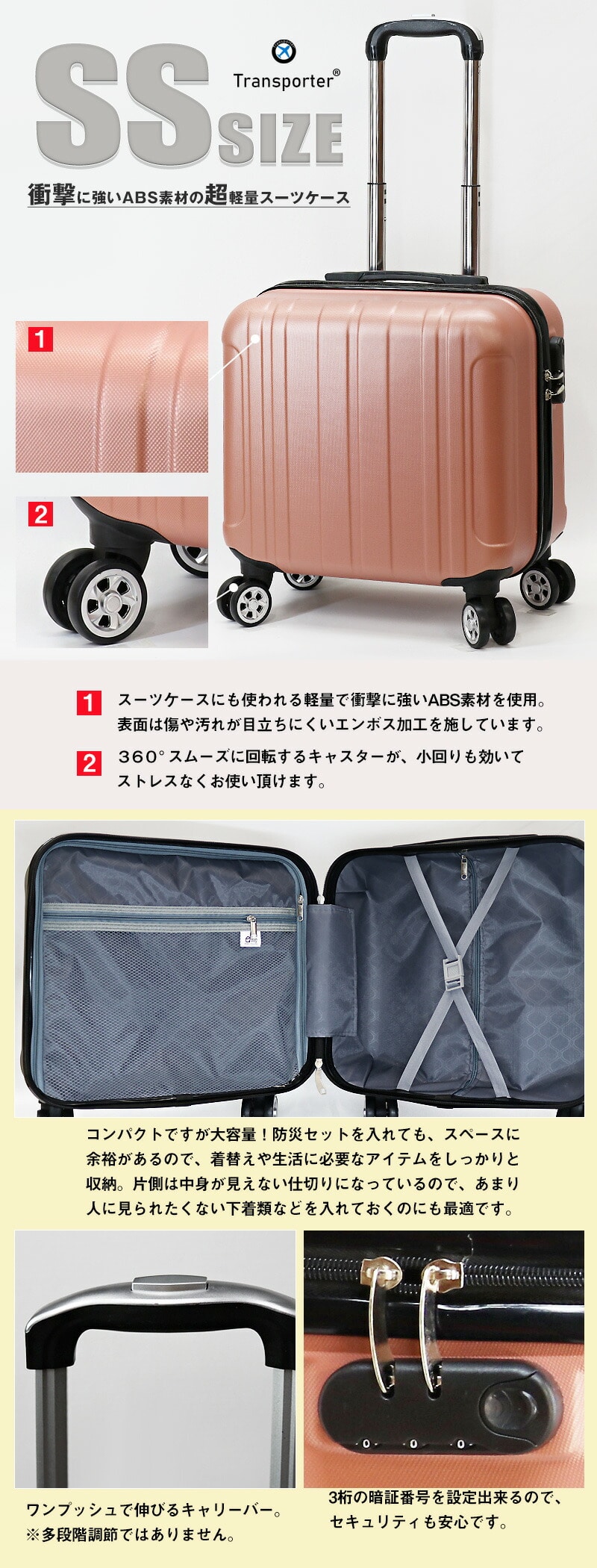 ●スーツケースは軽量で衝撃に強く、撥水加工を施したABS素材を使用。