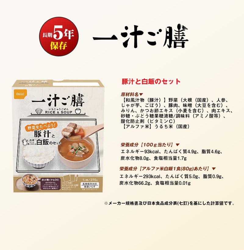 水が無くてもOK、アルファ米にお汁を注ぐことで、水が用意できないときにも炊き込みご飯風にお召し上がり頂けます。