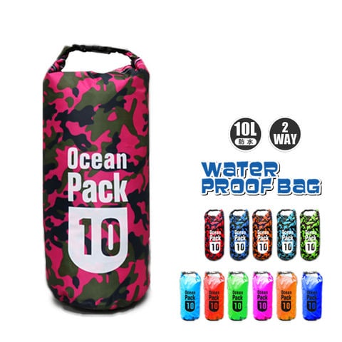 防水 防水バッグ プールバッグ アウトドア 大容量 10l 10L バッグ かばん ショルダーバック ウエストポーチ ビーチバッグ 大容量 迷彩ピーチ【bsb-10l】 トラベルソムリエ