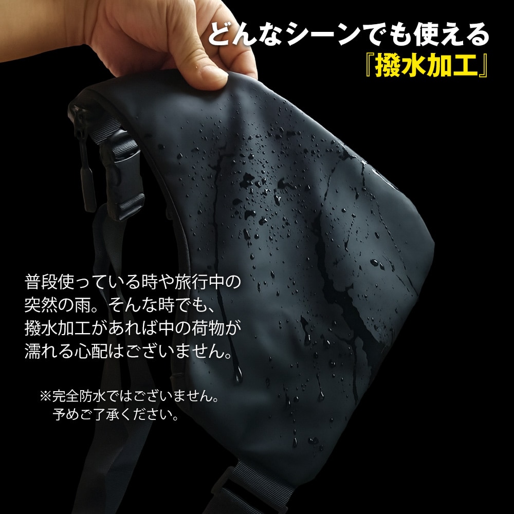 普段使っている時や旅行中の突然の雨。そんな時でも、撥水加工があれば中の荷物が濡れる心配はございません。