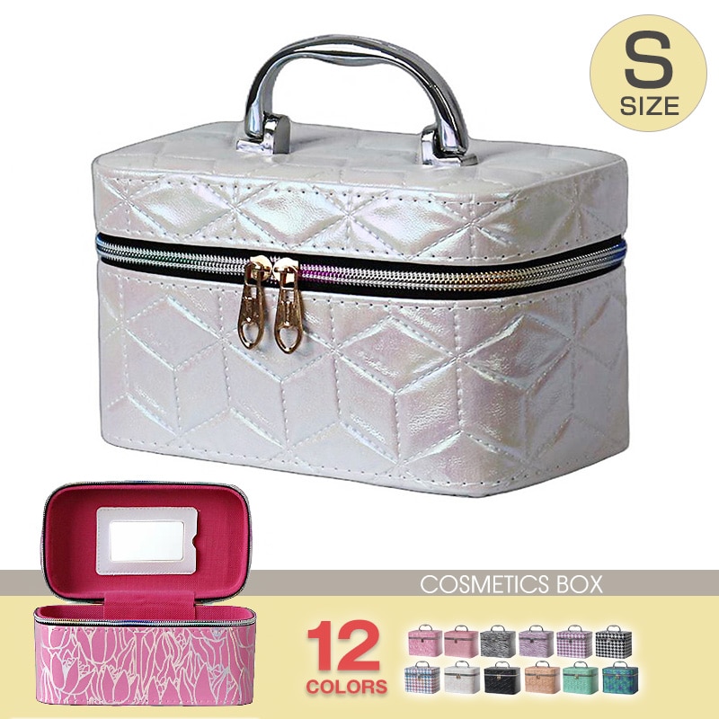 小さな鏡付きで、どこにでも持ち運べて気軽にメイクアップが出来る。 バニティタイプのコスメボックスが大中小の3サイズで登場。 「メイク道具が増えて整理が出来なくなってきた。」そういう方にもマッチするのが、このコスメボックスです! サイズに合わせて、メイク道具の収納を決めておけば、いつでもキレイに収納が出来て、メイクをもっと楽しくしてくれる事間違いなし! 一番小さいサイズは持ち運び用として使うのもGOODですね! 機能性としては、中に収納する事を想定して、比較的軽く持ち運びがしやすいシンプルな作りにしています。 ジッパーで開けるタイプになっており、蓋の内側には3サイズとも、小さな鏡が付属しています。 お部屋に置いておくだけで可愛い?全12カラーの豊富なカラーバリエーション! 3サイズとも揃えたくなる、おしゃれで可愛いコスメボックスです。 【コスメボックスについてのご注意】 中の鏡は割れ物です。お取り扱いは十分にご注意ください。