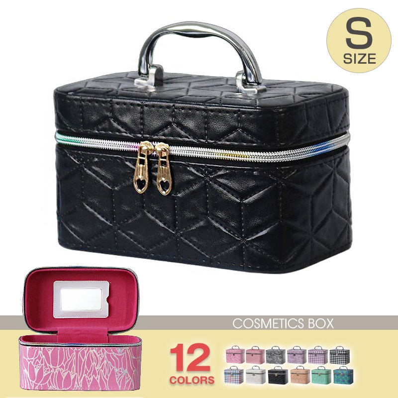 コスメボックス メイクボックス 化粧ボックス Sサイズ 大容量 鏡 鏡付き コスメ収納 化粧品 収納 ボックス おしゃれ 可愛い 使いやすい 【11345】 14B/サイレントブラック トラベルソムリエ