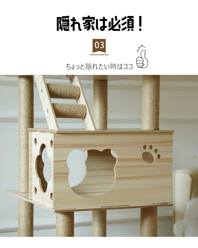 やんちゃなネコちゃんでも、遊んだり、隠れたり、ストレス発散になるキャットタワー!