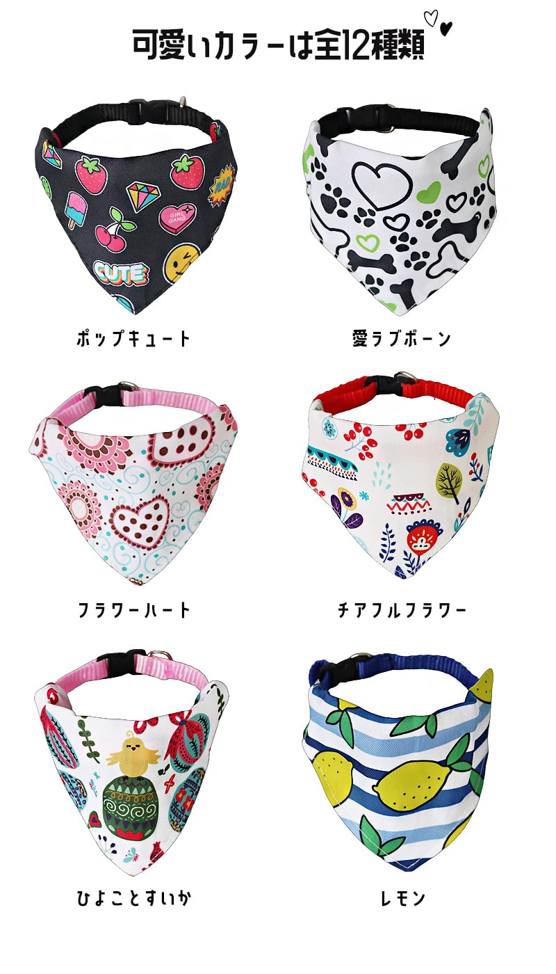 かわいいフルーツやワンちゃん柄などその日の気分に合わせて付け替えられる、 ペット用のバンダナが登場?