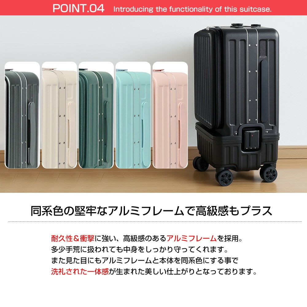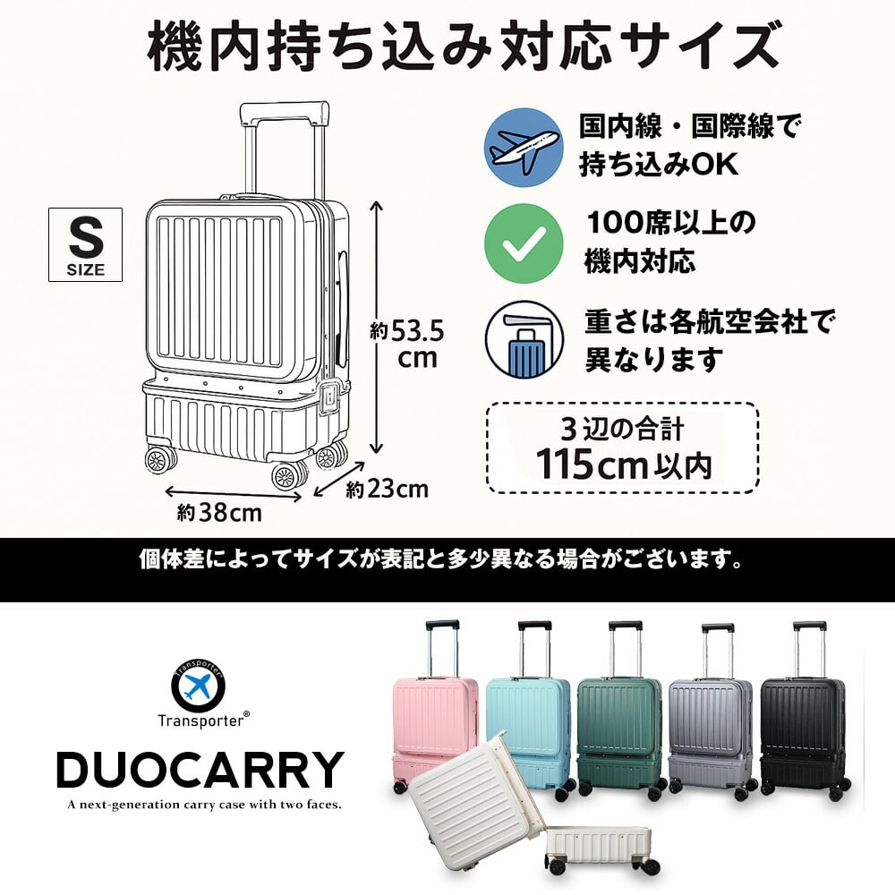 スーツケース 機内持ち込み フロントオープン 上下セパレート アルミフレーム キャリーケース S サイズ 1~3泊 40L TSAロック USBポート 静音 旅行 ビジネス 出張 修学旅行 国内旅行 ハードケース Transporter 【g21】グレー トラベルソムリエ t-s1