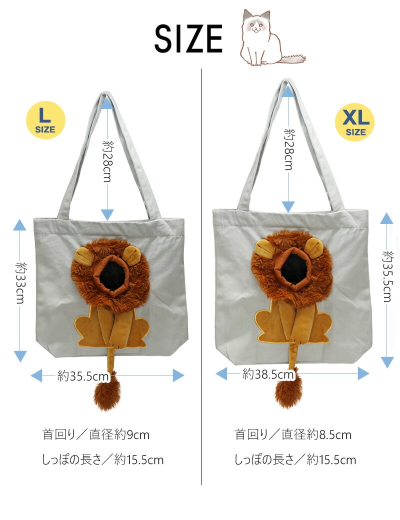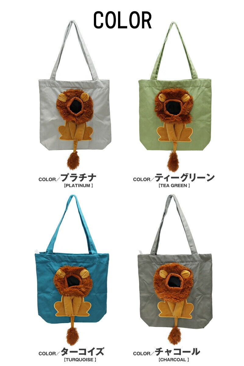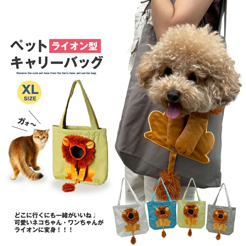ペット キャリーバッグ ライオン XLサイズ お散歩バッグ トートバッグ ペット用品 犬 猫 小型犬 ペットバッグ 手提げ かばん メール便【KB-XL】 チャコール トラベルソムリエ