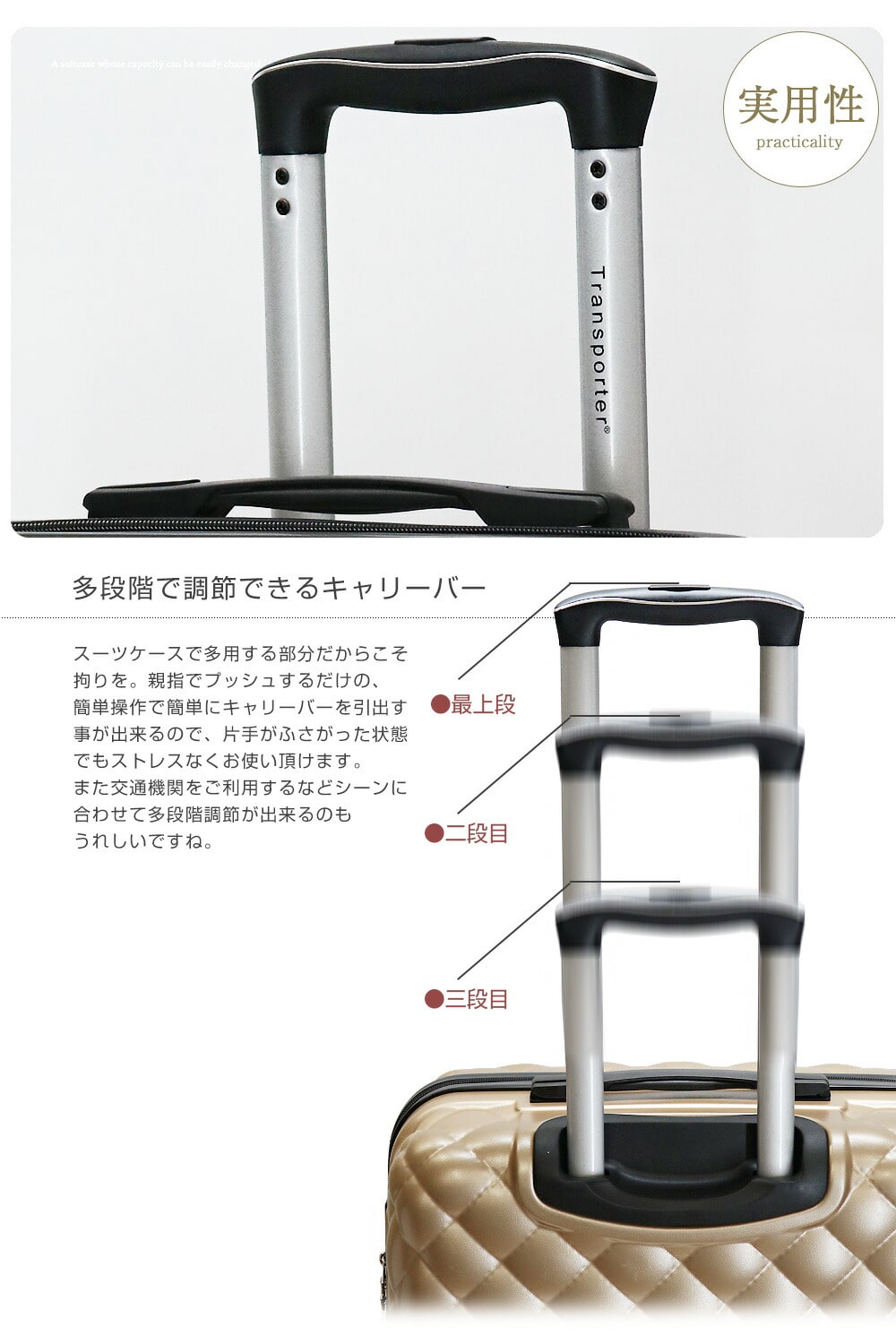 軽量で持ち運びが簡単なこのキャリーケースは、長時間の移動でも快適にご利用いただけます。キルト風のデザインが加える愛らしさと、機能性が兼ね備わった「Transporter」のキャリーケースで、新しい旅の体験をお楽しみください。