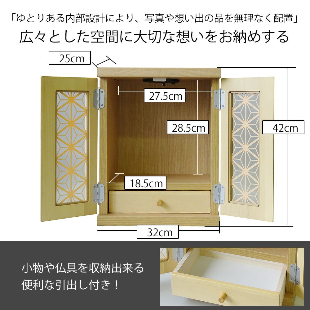 収納スペースはコンパクトながら、 最大6寸の骨壺まで収納可能。