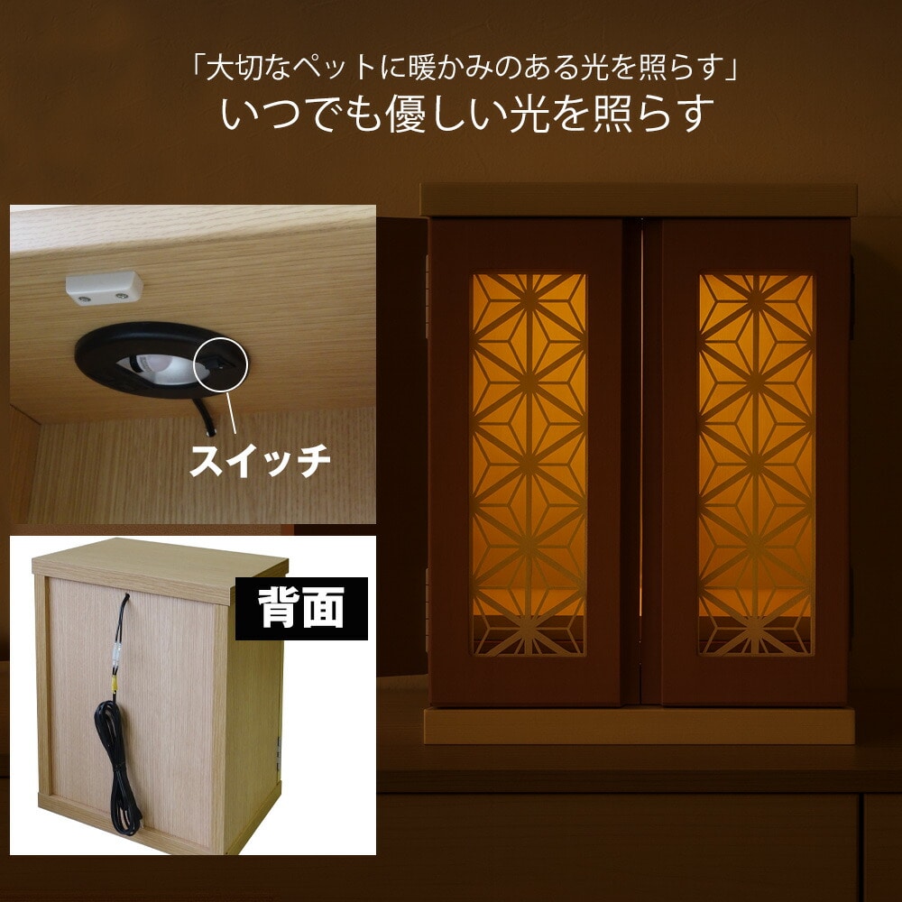 マンションや一人暮らしのお部屋にも置きやすい小型サイズで、 小型犬・猫・うさぎ・鳥など、さまざまなペットのメモリアルスペースとして最適です。