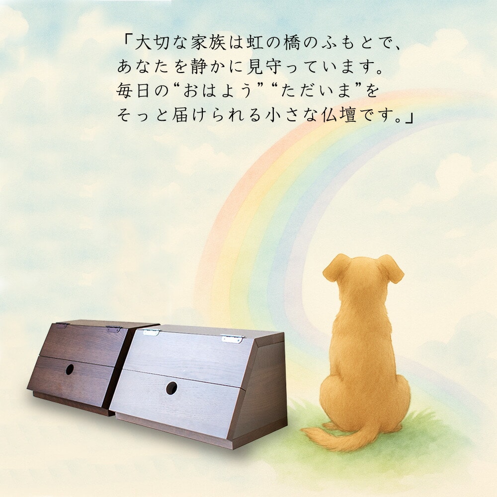 自然な木目が美しいホワイトオーク材は、リビングや寝室にも置きやすく、 ペット仏壇・ペット供養台・ミニ仏壇・メモリアルボックス をお探しの方に最適。