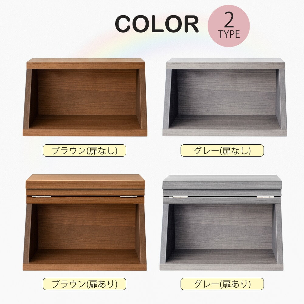 扉付きタイプはホコリを防ぎ、扉なしタイプはいつでも優しく見守れる開放的なデザイン。