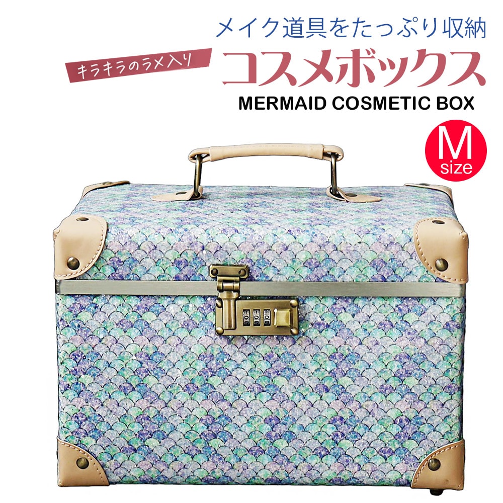 コスメボックス メイクボックス Mサイズ マーメイド 化粧ボックス 大容量 鏡 鏡付き コスメ収納 化粧品 メイク道具 収納 ボックス おしゃれ 可愛い 卓上 小物入れ コスメケース 【mermaid-cbx】20/ラグーンブルー(グリーン) HANAism トラベルソムリエ