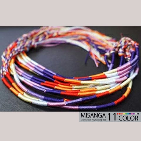 お守りの一種で手首や足首に巻き自然に切れたら願いがかなうと言われているミサンガ♪ アジアンテイストでスタイルを選ばないデザイン。日本ではJリーグの選手から人気がでて 今でも人気商品です。 ファッション性も高く、サマーシーズンには強力なアイテムに! カップル、友達とおそろいでつけるのも♪ アンクレットとしてもオススメです。穴に通して着けるタイプで簡単装着。