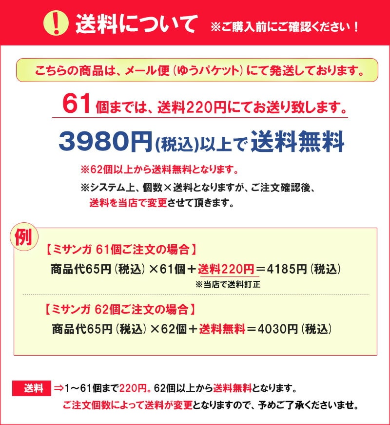 合計金額4980円(税込)以上で「送料無料」※一部地域は除く。