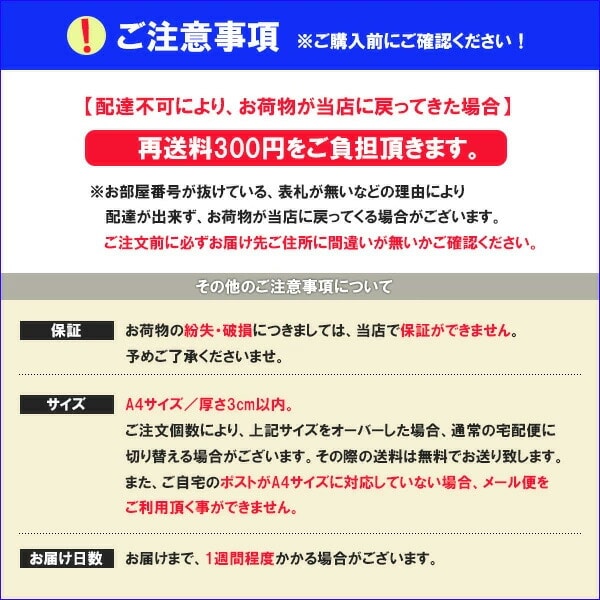 ■メール便の場合、一切の保証はございません。破損・紛失の可能性も ございますので運送便をお勧めします。