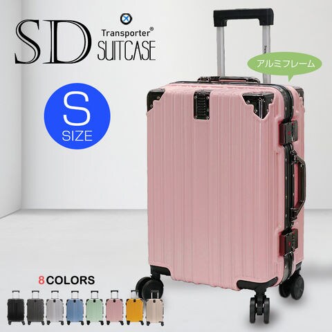 スーツケース Sサイズ 軽量 アルミフレーム カップホルダー キャリーケース キャリーバッグ 大容量 丈夫 おしゃれ 多機能 国内 旅行 修学旅行 Transporter 【sd20-s】 桜茶(ピンク) トラベルソムリエ