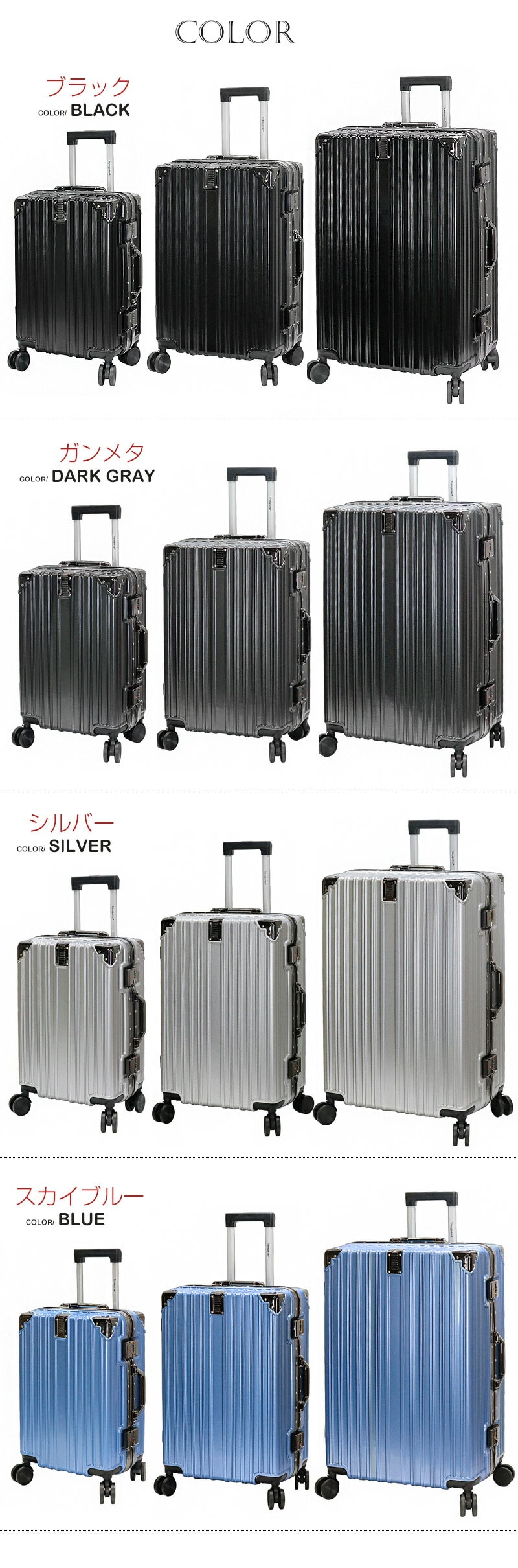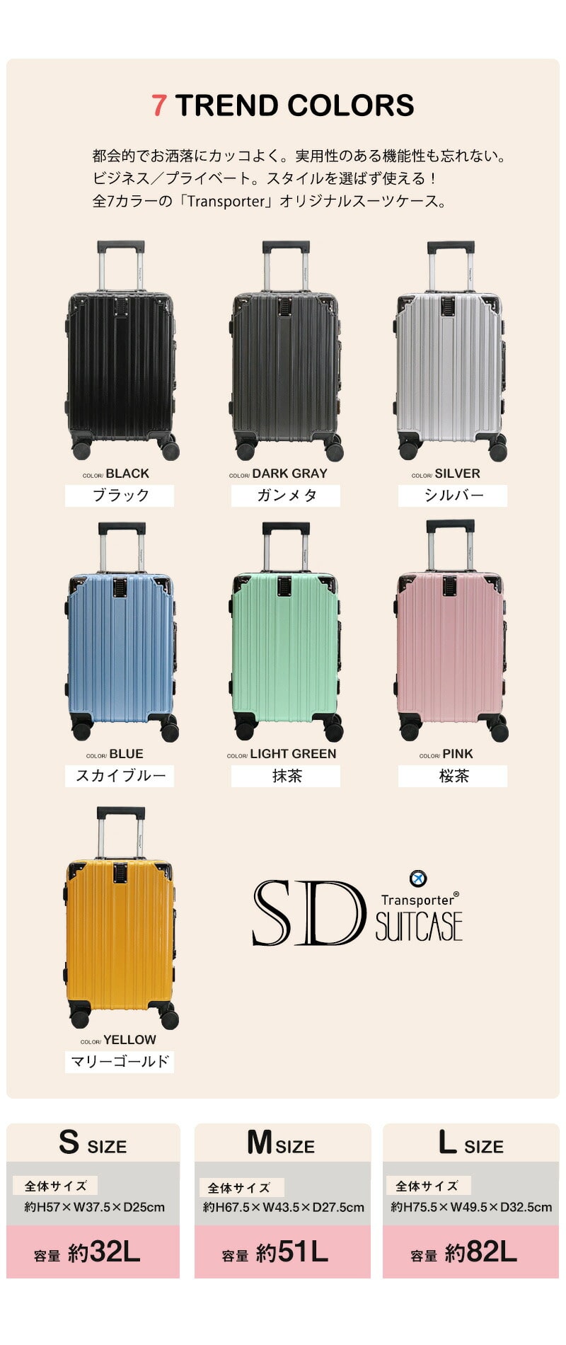 全7カラーの「Transporter」オリジナルスーツケース。
