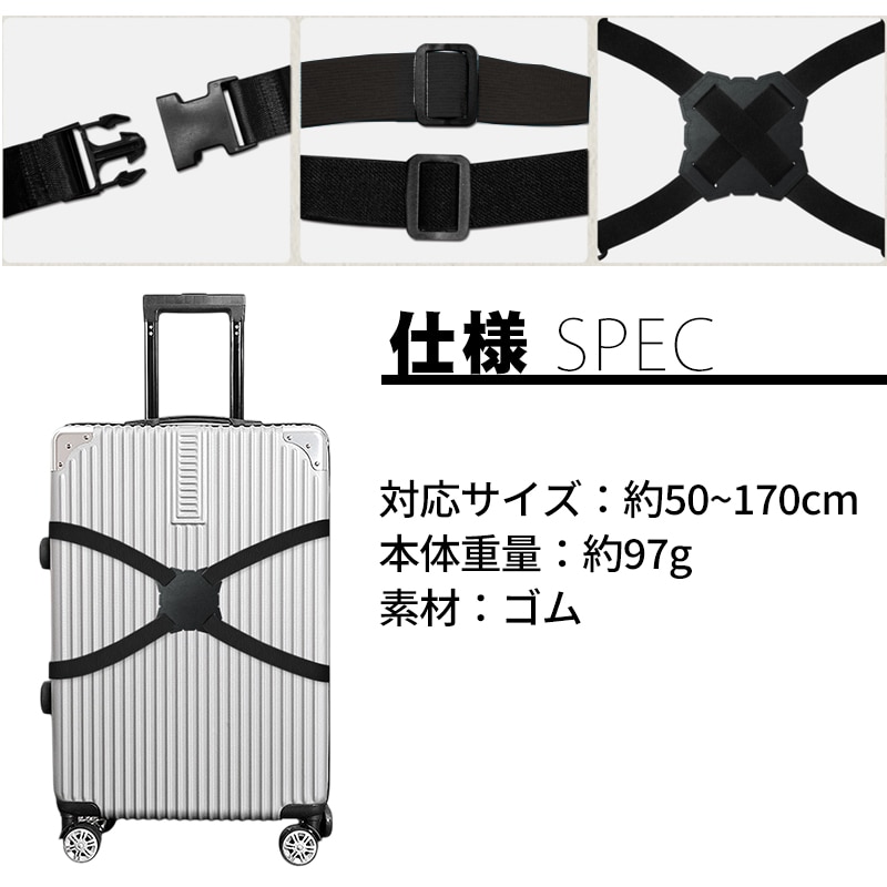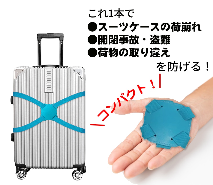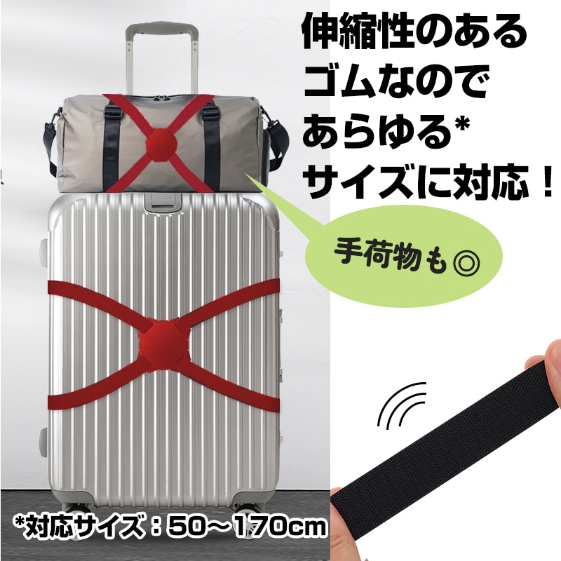 ゴム素材だから、 パッと5秒で簡単に取り付け可能!荷崩れや盗難を防ぎ、空港のターンテーブルで荷物探しもラクラク!