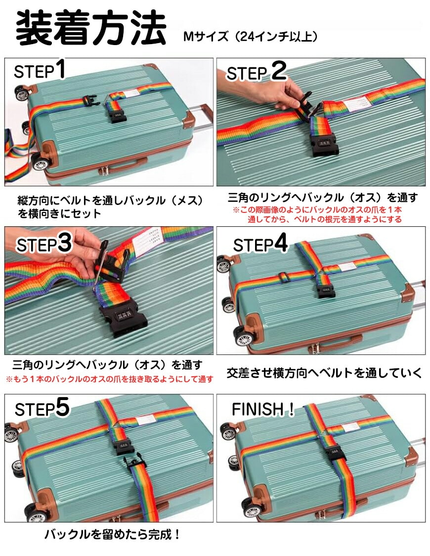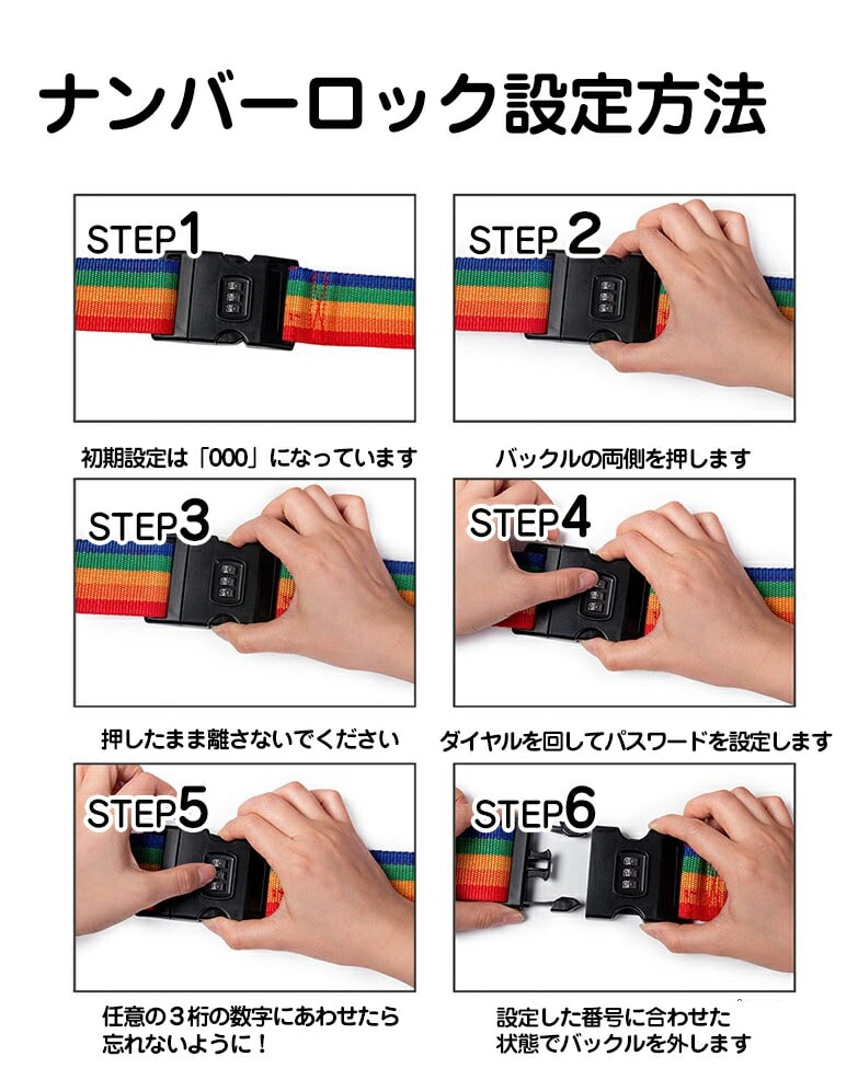 旅をもっと快適にする「スーツケースベルト+(プラス)」は、 荷崩れや盗難を防ぎ、目立つので空港のターンテーブルで荷物探しもラクラク! 15色のカラフルなバリエーションで、お好みに応じてお選びいただけます。 3桁のナンバーロックタイプと、ロックなしタイプからお選びいただけます。 ネームタグもついているので、万が一の紛失・ロストラゲッジのときも安心?