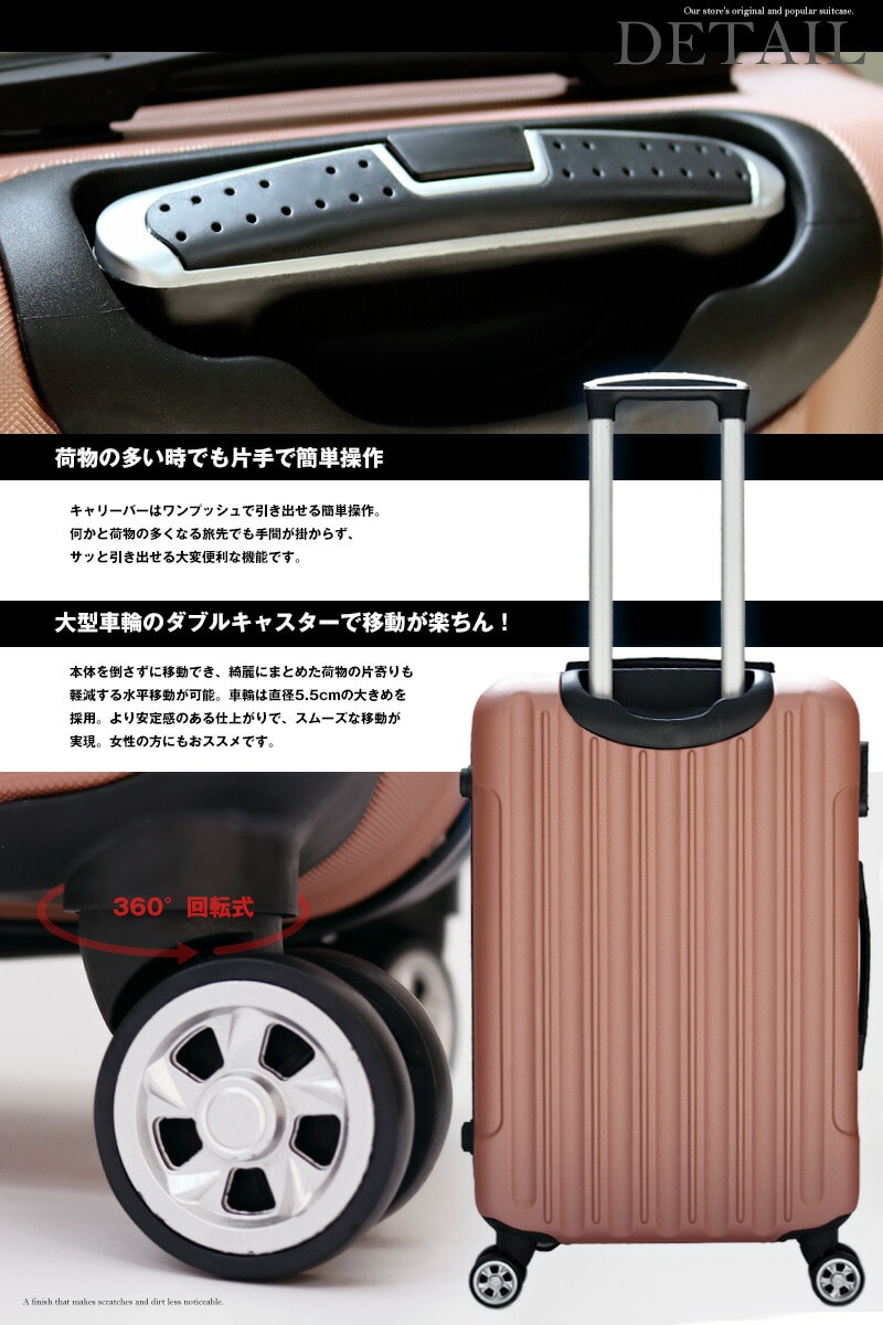 軽量スーツケース。ビジネスにも使えるシンプルデザインであなたを悩ませる16色バリエーション。