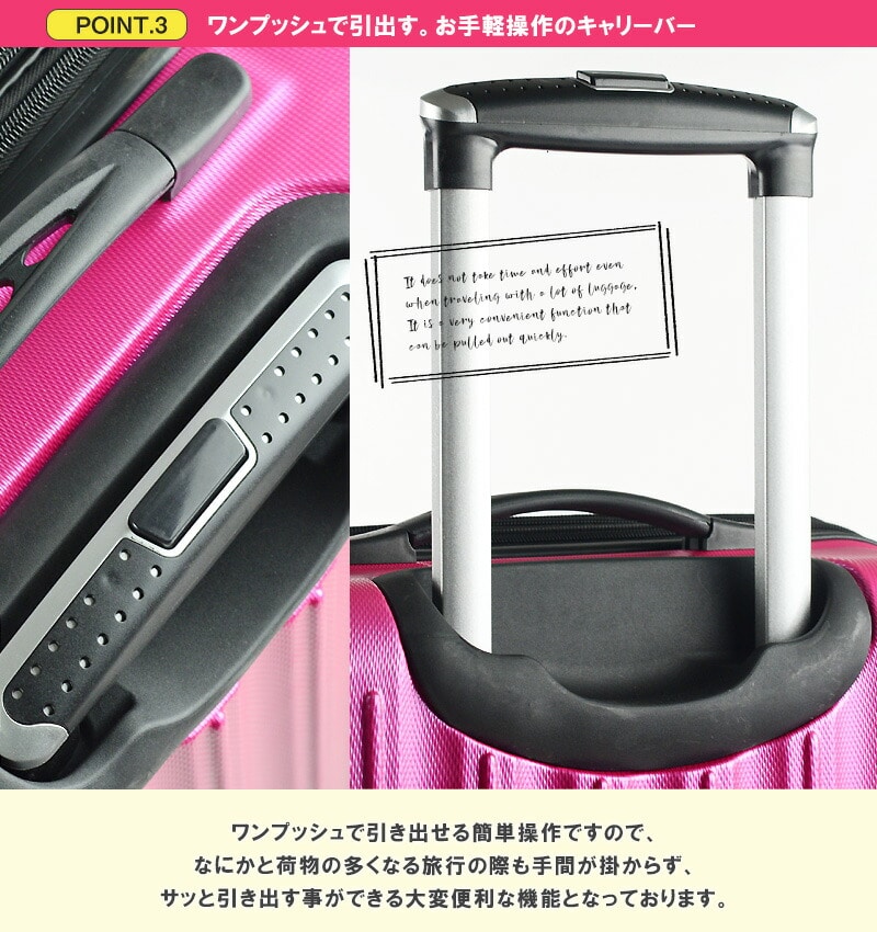 短期旅行や短期出張に最適なサイズなので手軽に使用できます。