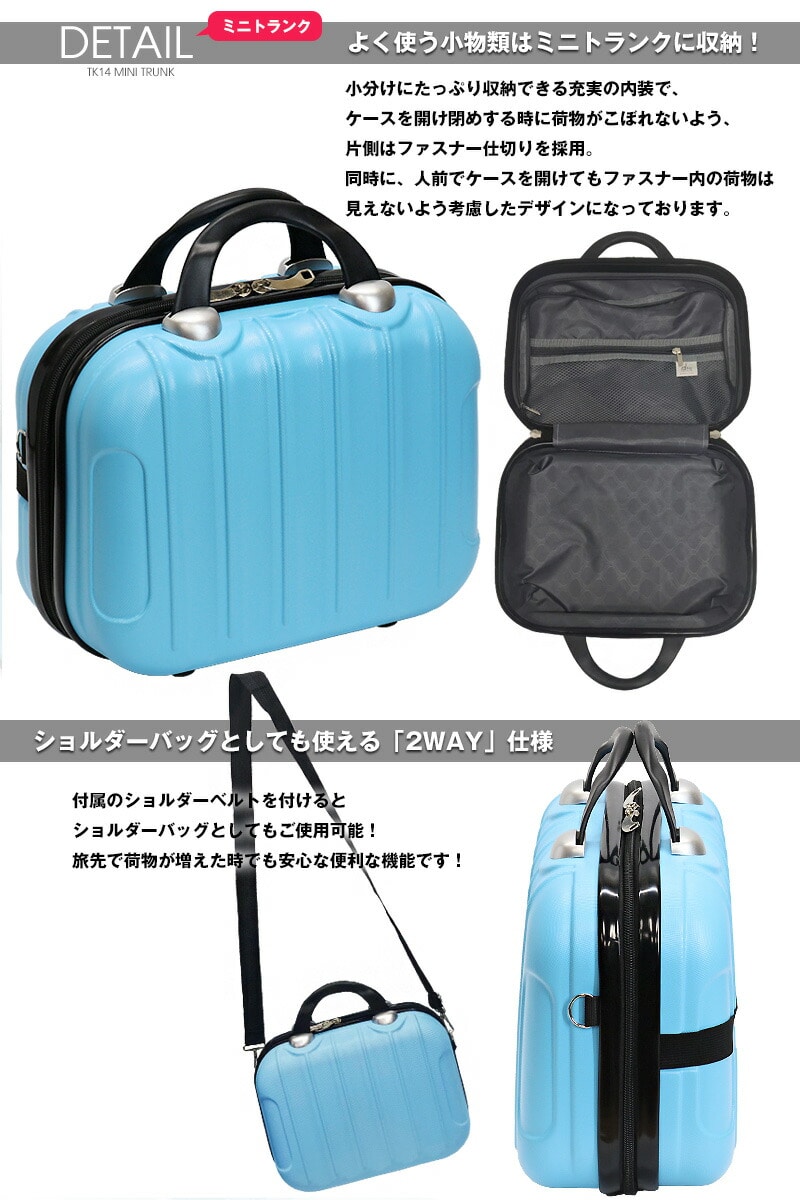 機内持ち込みタイプの軽量スーツケースに同色のミニトランクをお付けした親子セットが登場!