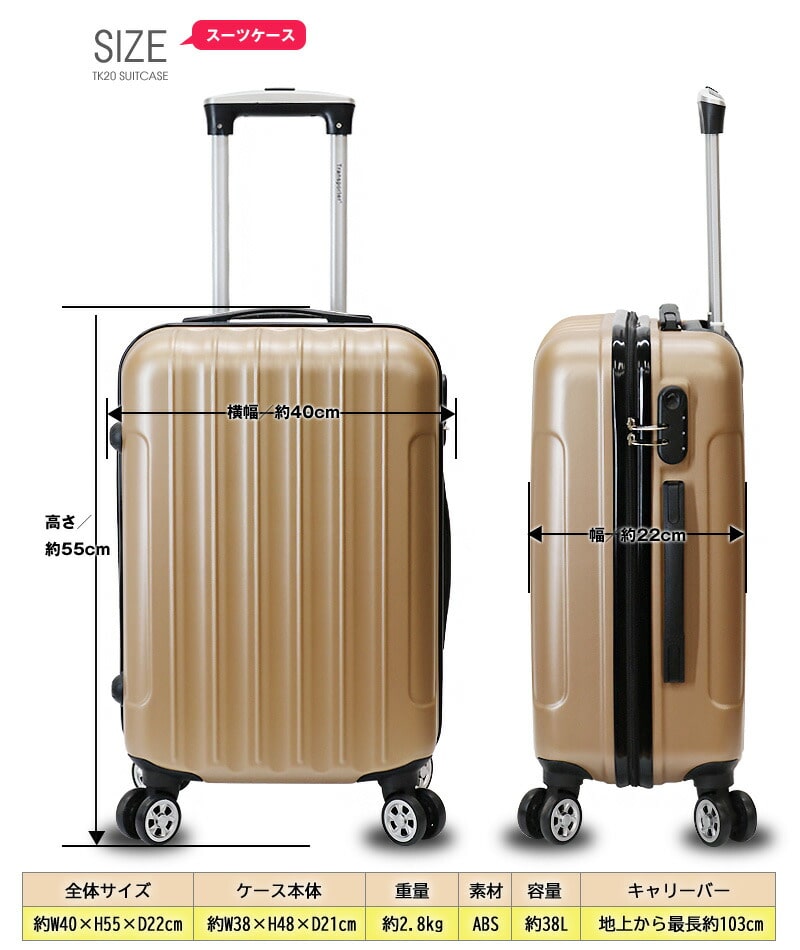 短期旅行や短期出張に最適なサイズなので手軽に使用できます。