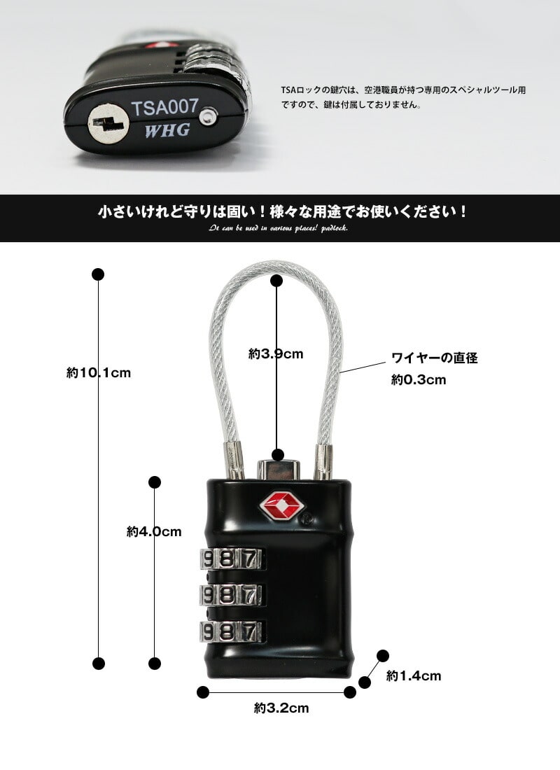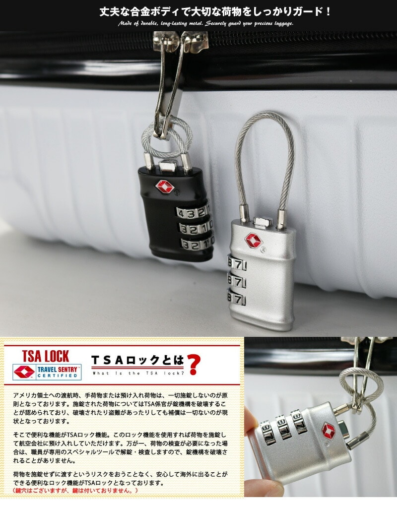 TSA ロック ワイヤーロック ダイヤル式 合金 南京錠 鍵 スーツケース 旅行用品 メール便【tsa-526】 ブラック トラベルソムリエ