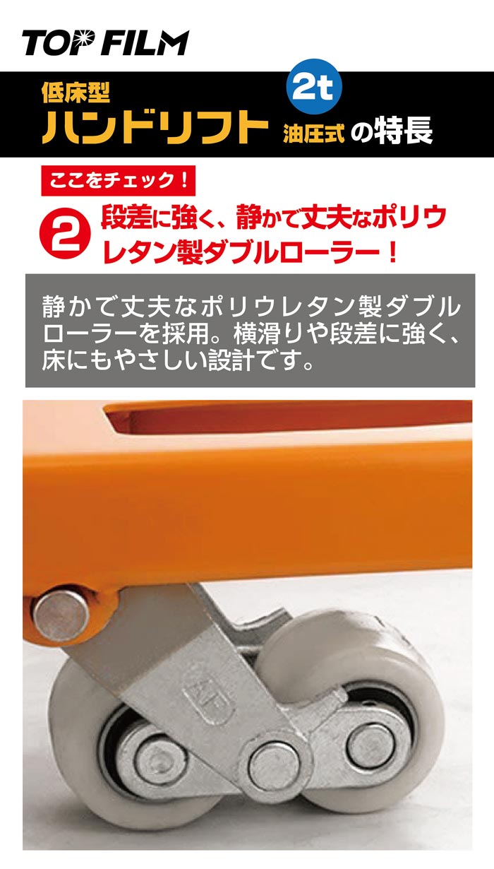 ●段差に強く、静かで丈夫なポリウレタン製ダブルローラー!