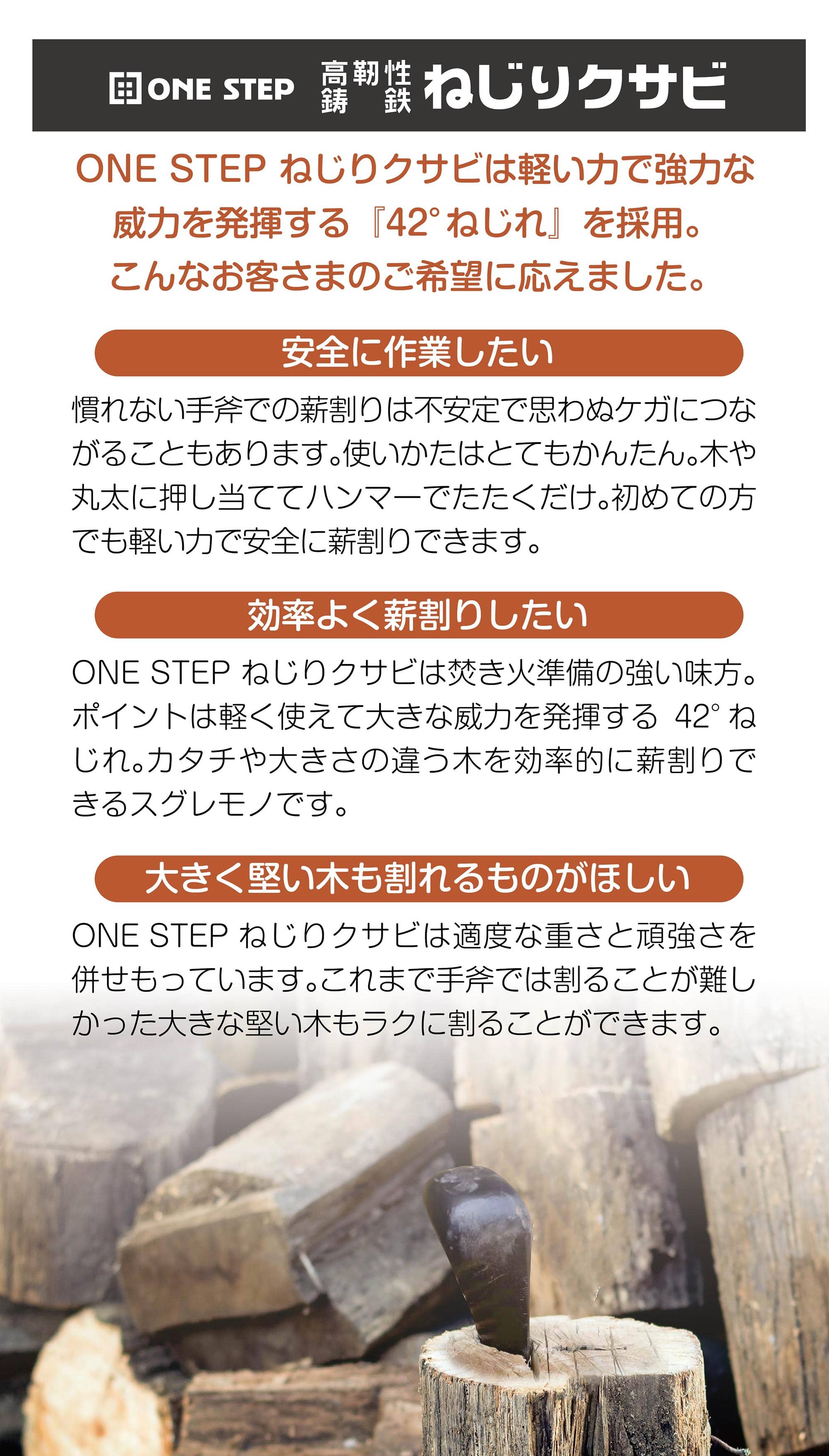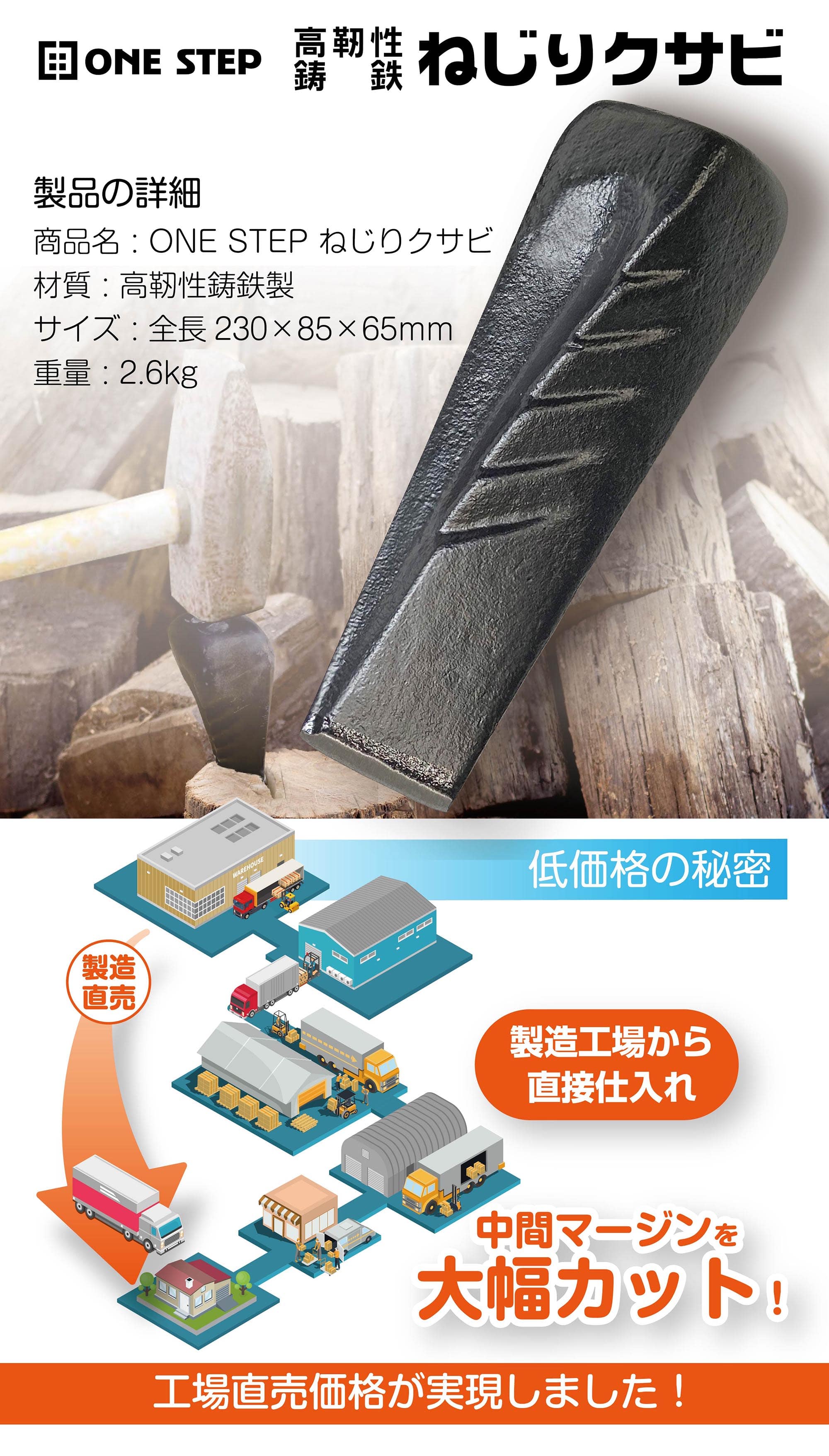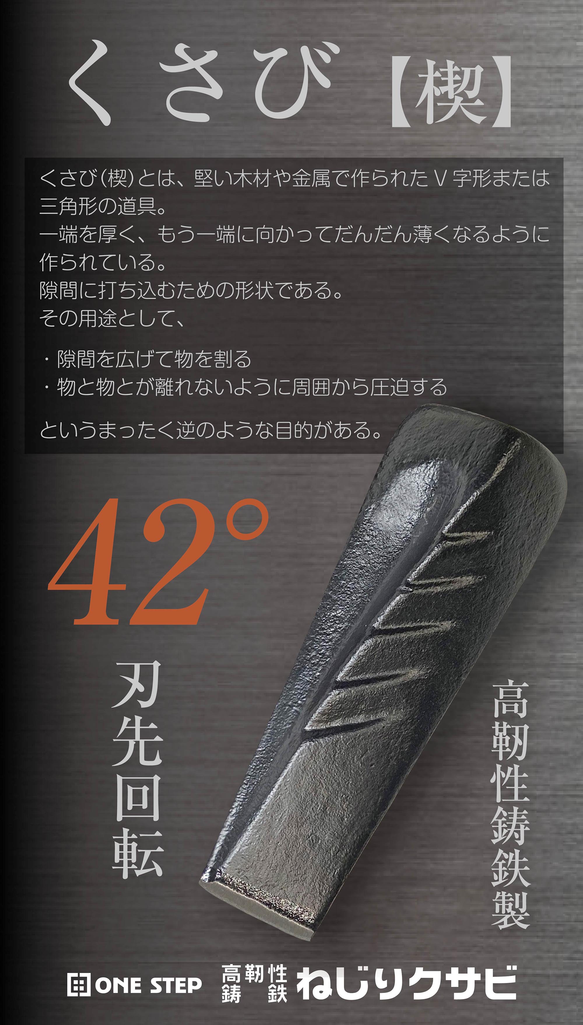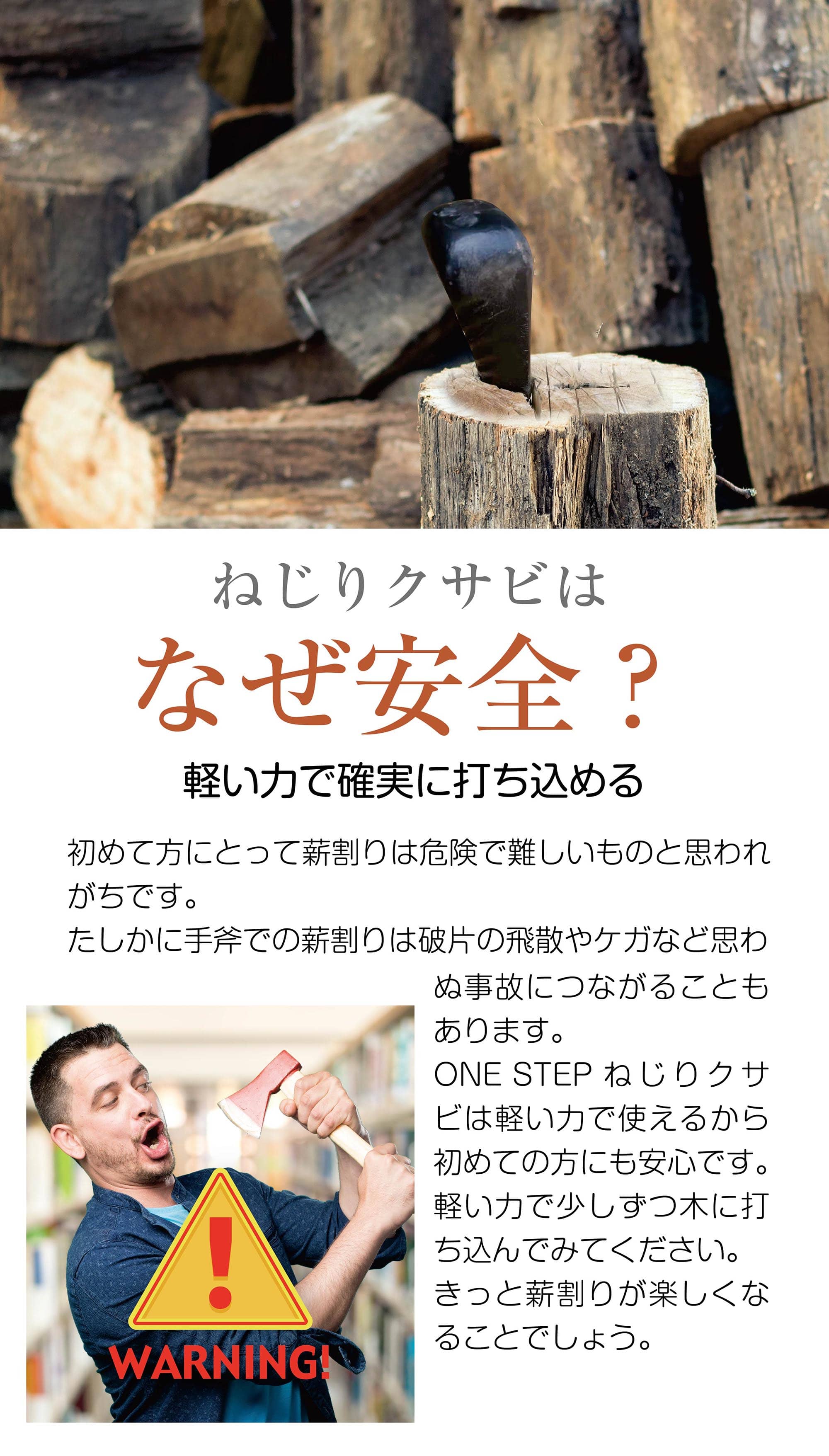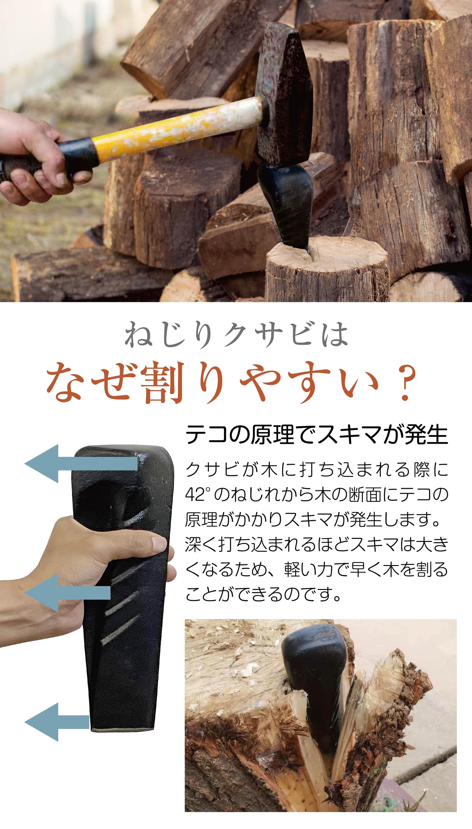 ねじり 楔 薪割り 薪 割れにくい木 黒色