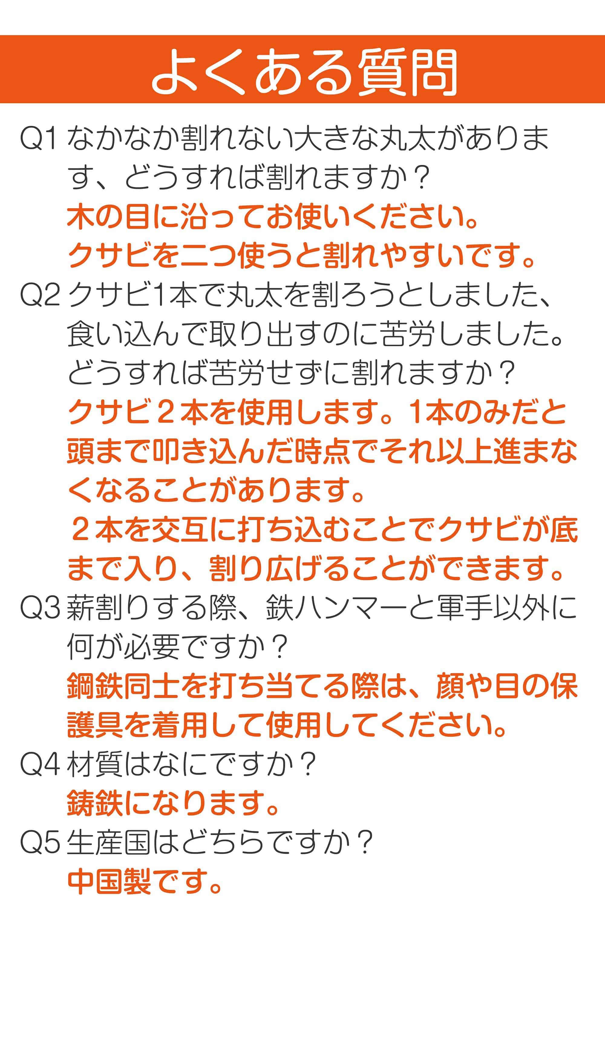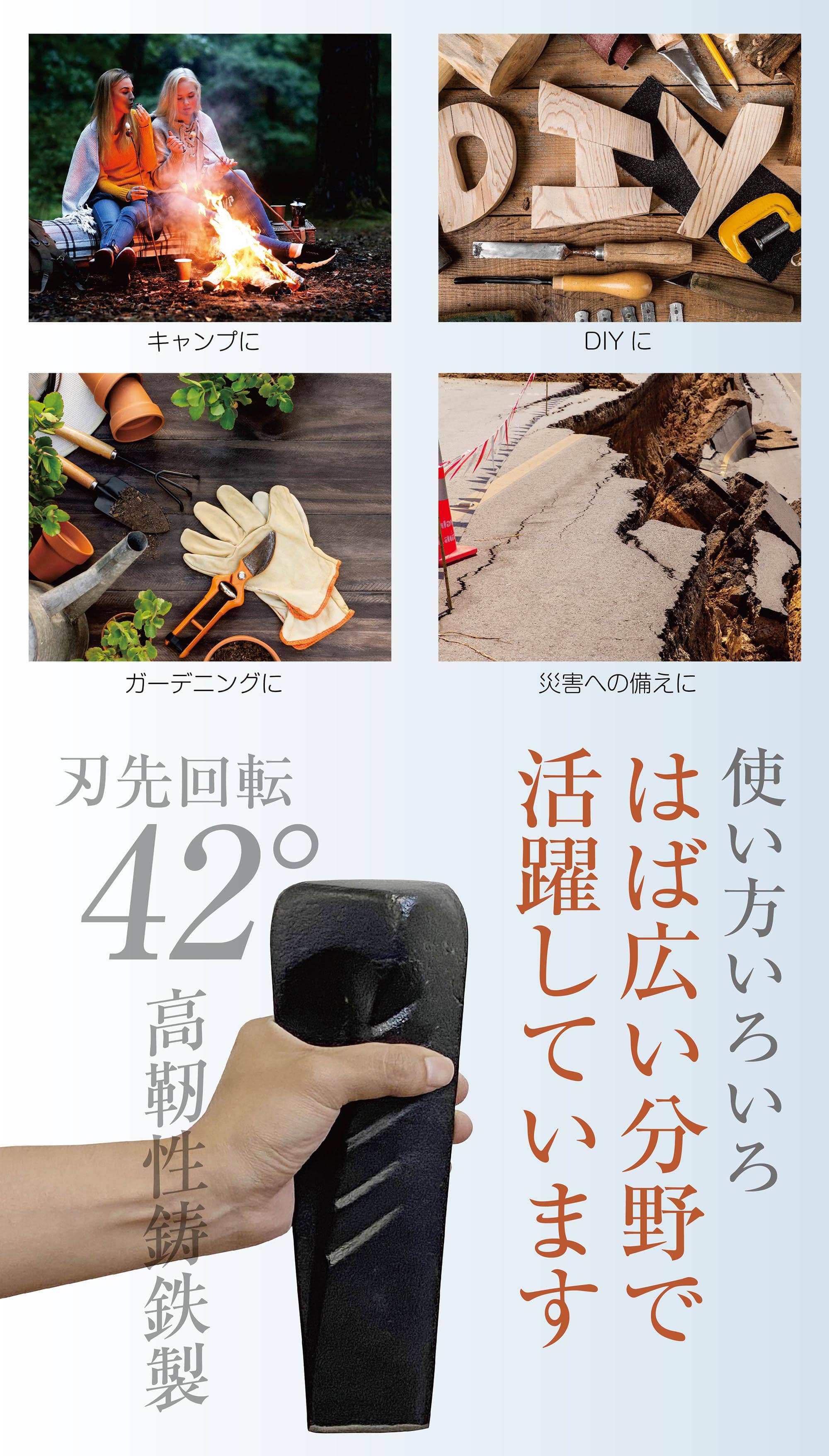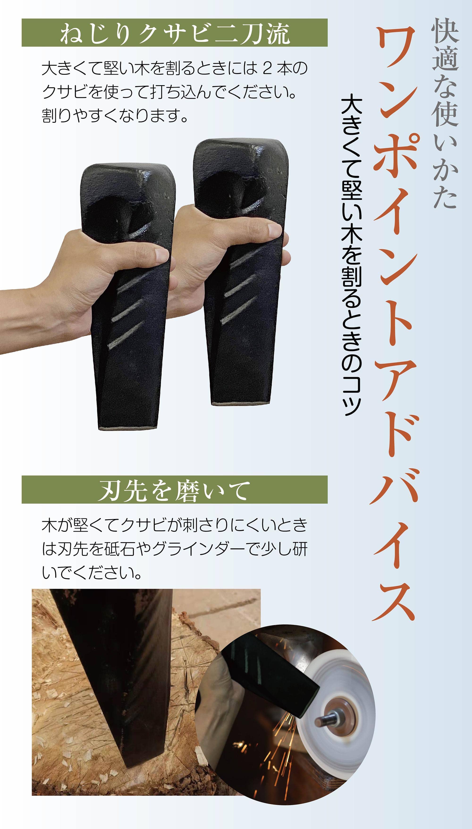 2本を交互に打ち込むことでクサビが底まで入り、割り広げることができます。