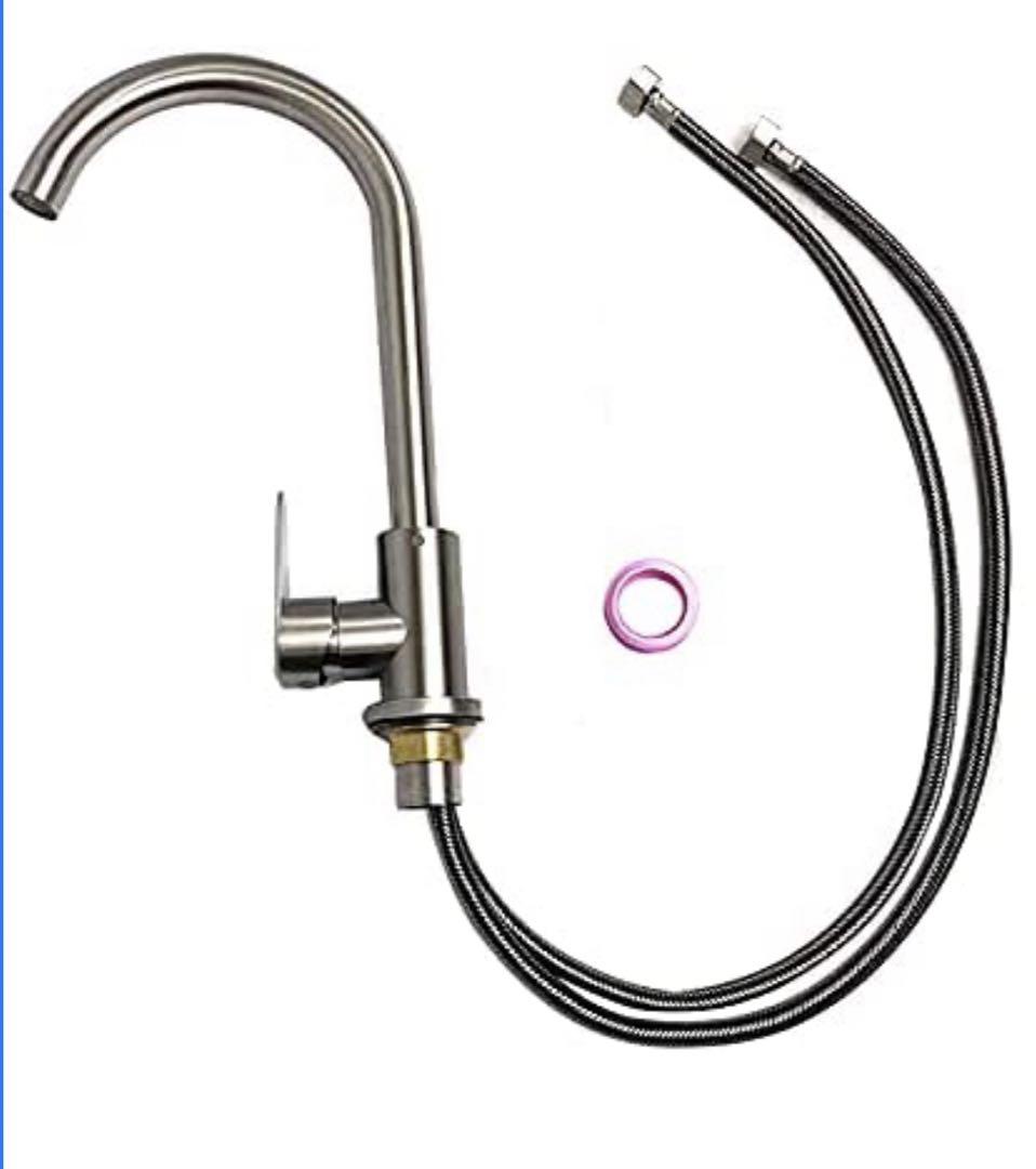 【取り付け簡単】取り付け穴径約3.2-3.5cm対応/取り付けホースの規格:G1/2ナッツ/高さ約34cm/セット内容:本体×1継/手、パッキン×1式/取り付けホース×2(約80cm/シールテープ×1