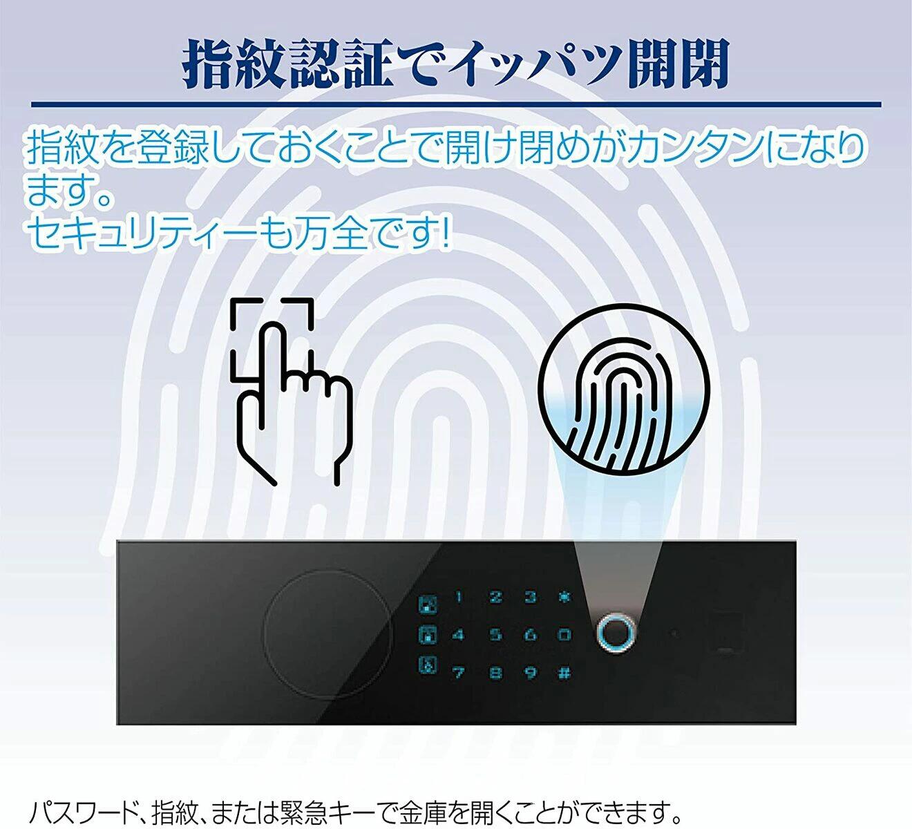 【貴重品や大事な書類などをしっかり保管】現金や通帳といった貴重品はもちろん、パスポートや健康保険証、マイナンバーカードなどの個人情報のセキュリティ対策にもオススメな指紋認証・テンキー式小型電子金庫です。複数の指紋、お好きな暗証番号を登録でき、緊急開錠用の鍵も付属しているので、安心してご使用いただけます。