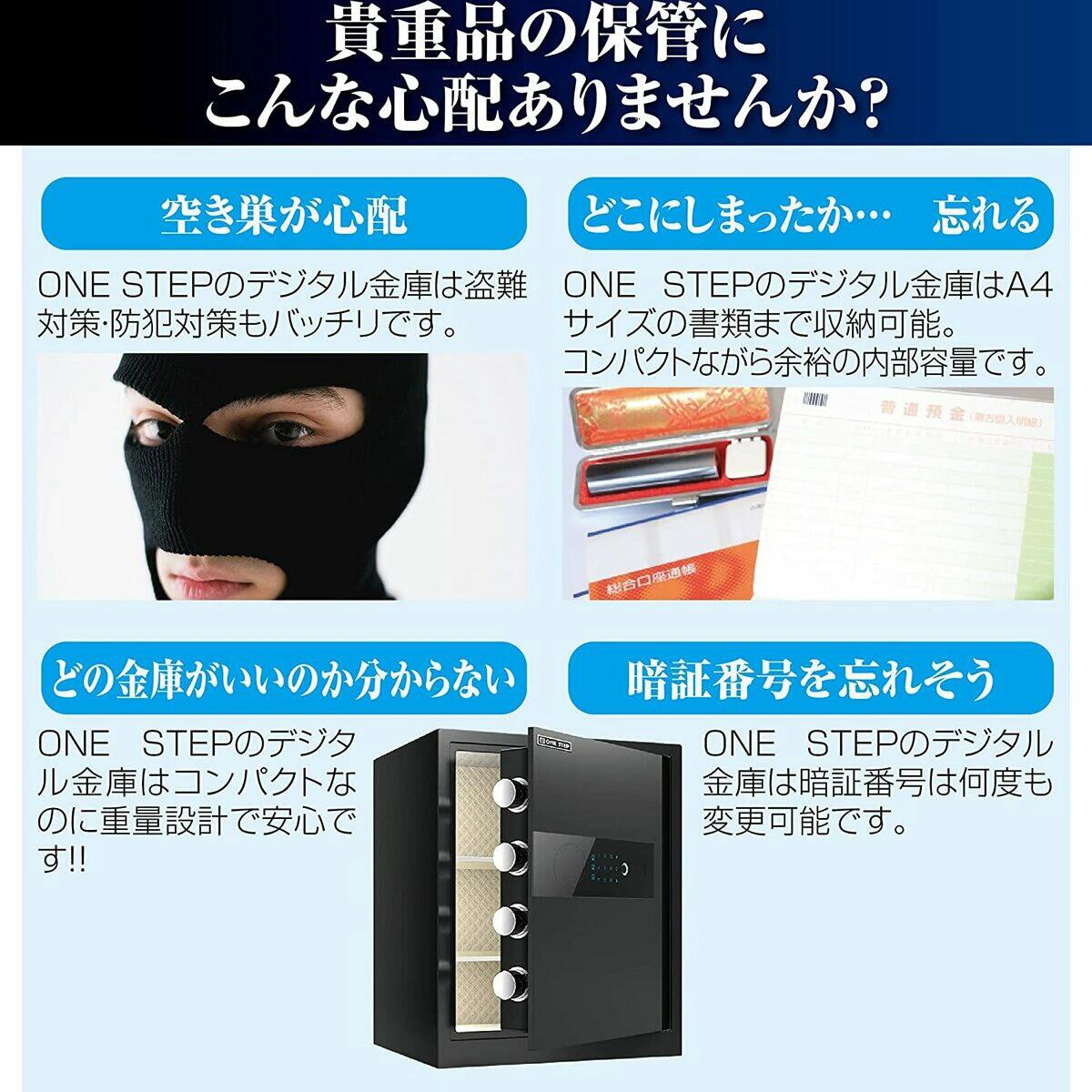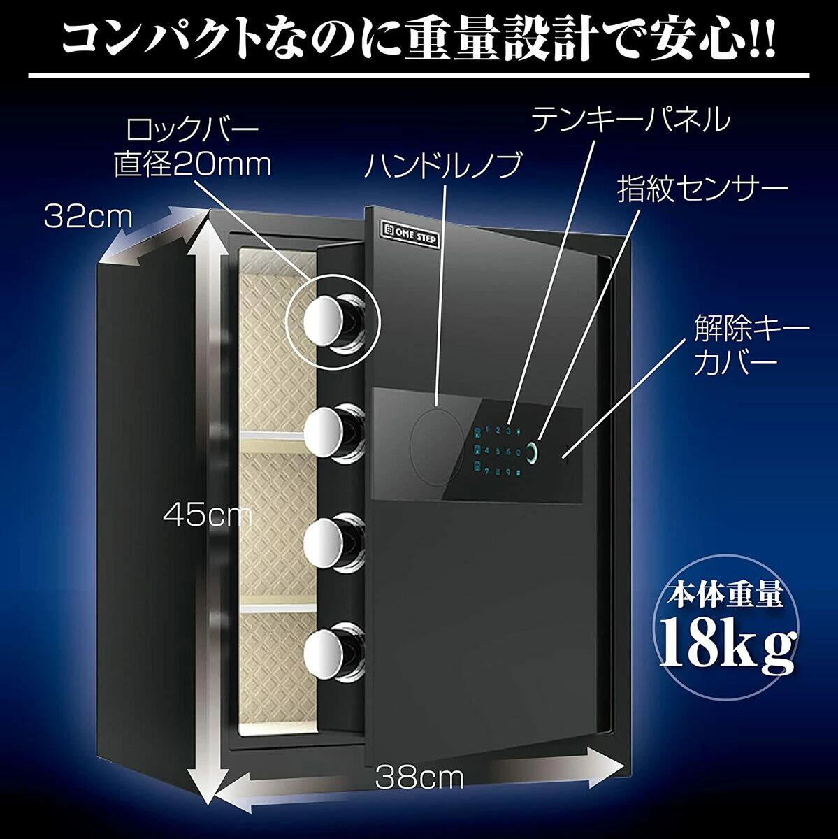 【頑丈!大切な貴重品をがっちり守る】コンパクトなのに小物がまとめて入る!現金や通帳といった貴重品はもちろん、パスポートや健康保険証、マイナンバーカードなどの個人情報のセキュリティ対策にもオススメな指紋認証、テンキー式電子金庫です。4本のバーでしっかりロック!安心な頑丈設計! ピッキングに強い鍵付き、電池が無くなった場合や暗証番号を忘れた場合は、キーで開閉できるので安心です。