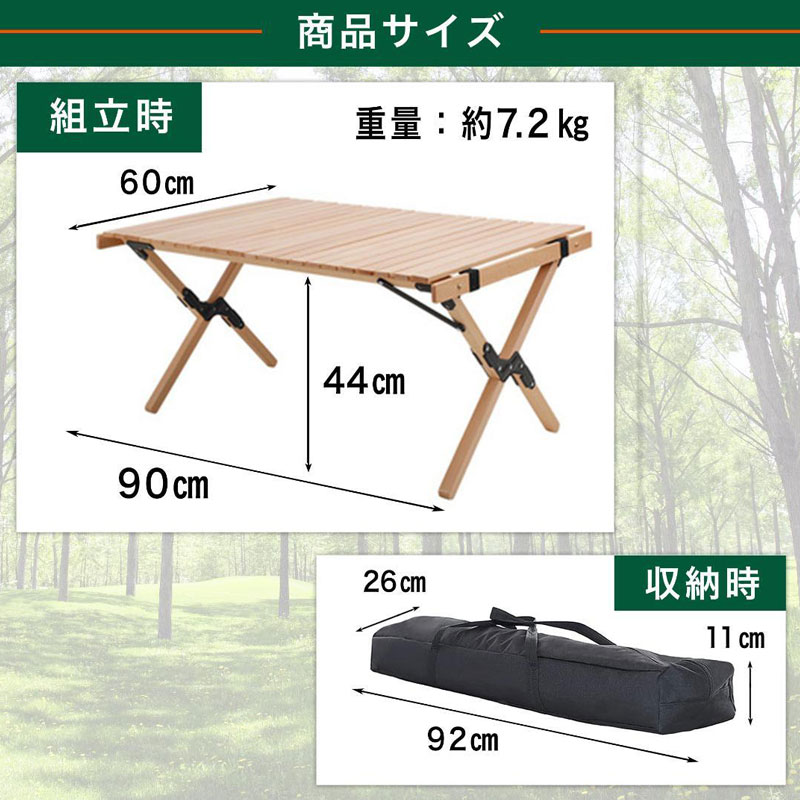 この木材は強度に優れていて、耐重荷は約30kgで耐久性が高いので、外で使用するアウトドアの場面でも自然に調和し、長期間使えるアウトドアテーブルとして活躍してくれます。